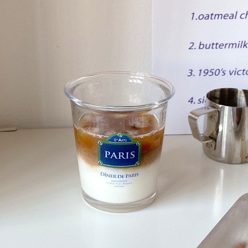 [JAFA] BONBON Gelas Beling Kaca Bening Aesthetic Tulisan Teks Aesthetic Korea Paris Clear Glass Text Letters Typography Cup