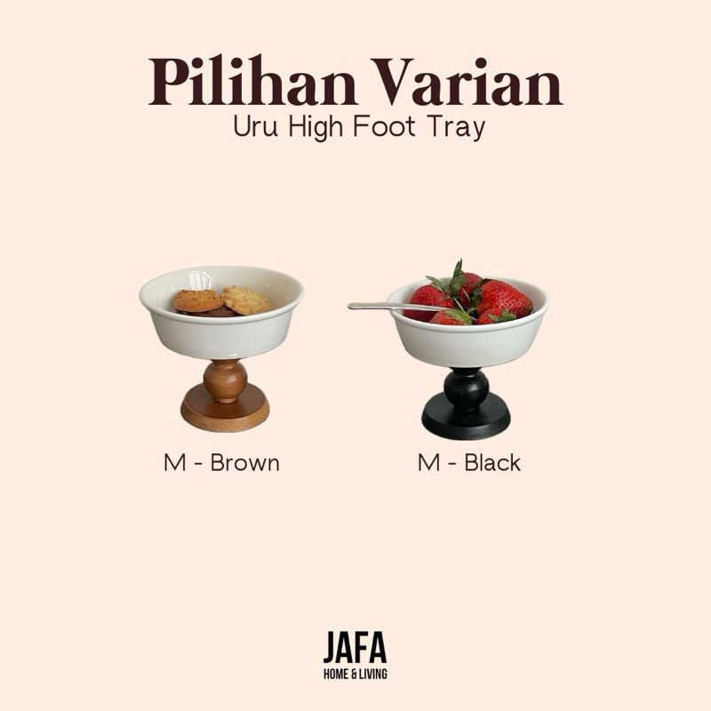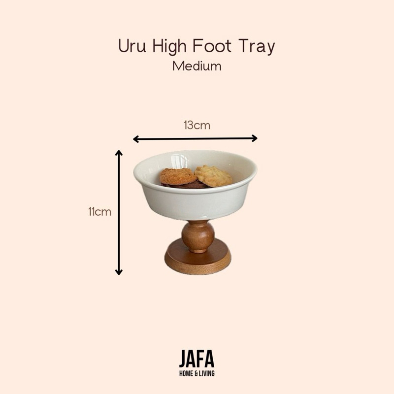 [JAFA] URU High Tray Nampan Keramik Kaki Kayu Premium Tray Minimalis Tempat Aksesoris Buah Estetik Home Decor Ruang Tamu