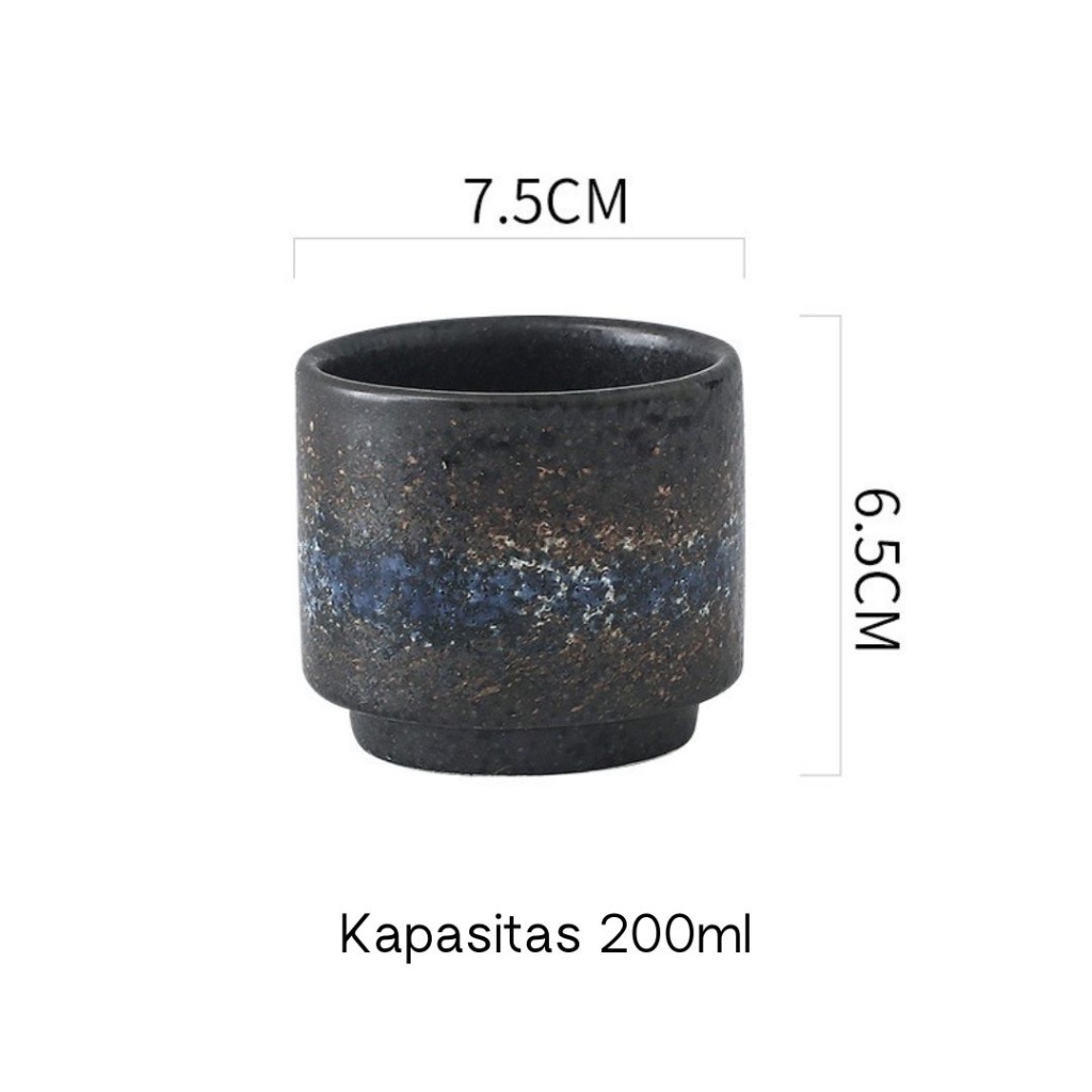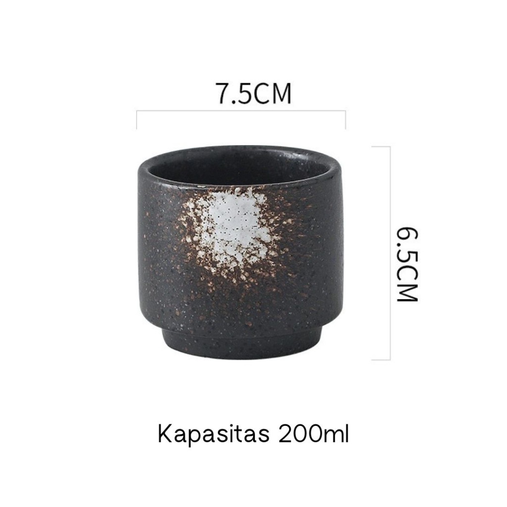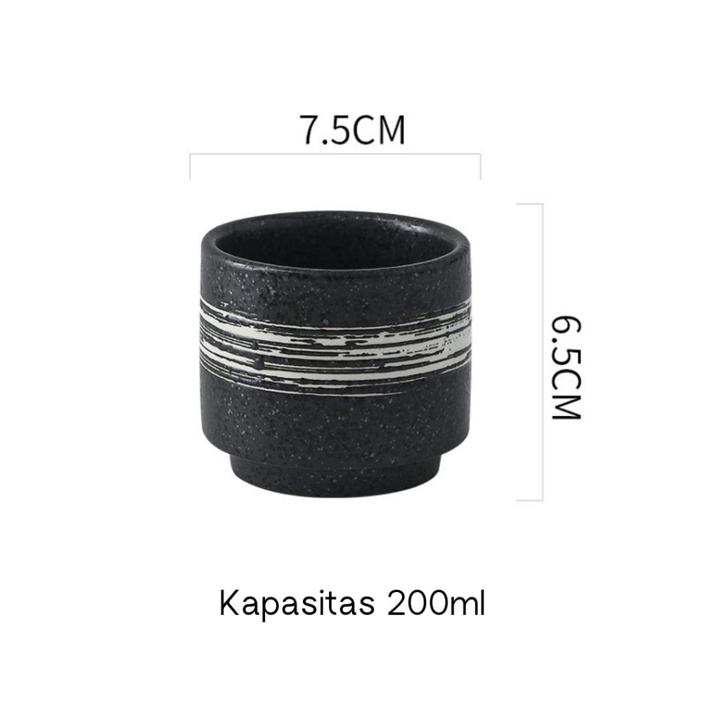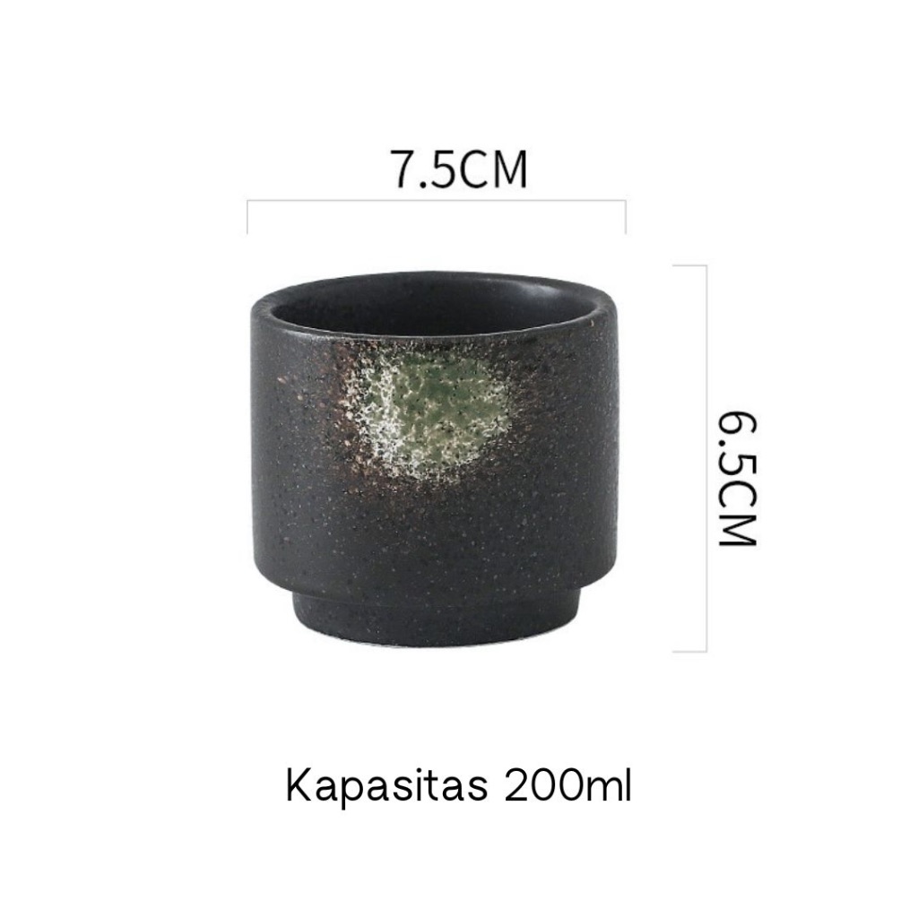 [JAFA] BLACK Series - Gelas Ocha Keramik Hitam Teh Bentuk Bulat Nuansa Jepang Ceramic Tea Cup Gelas Ocha Round Teh