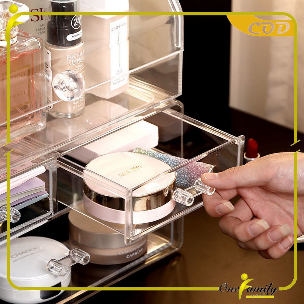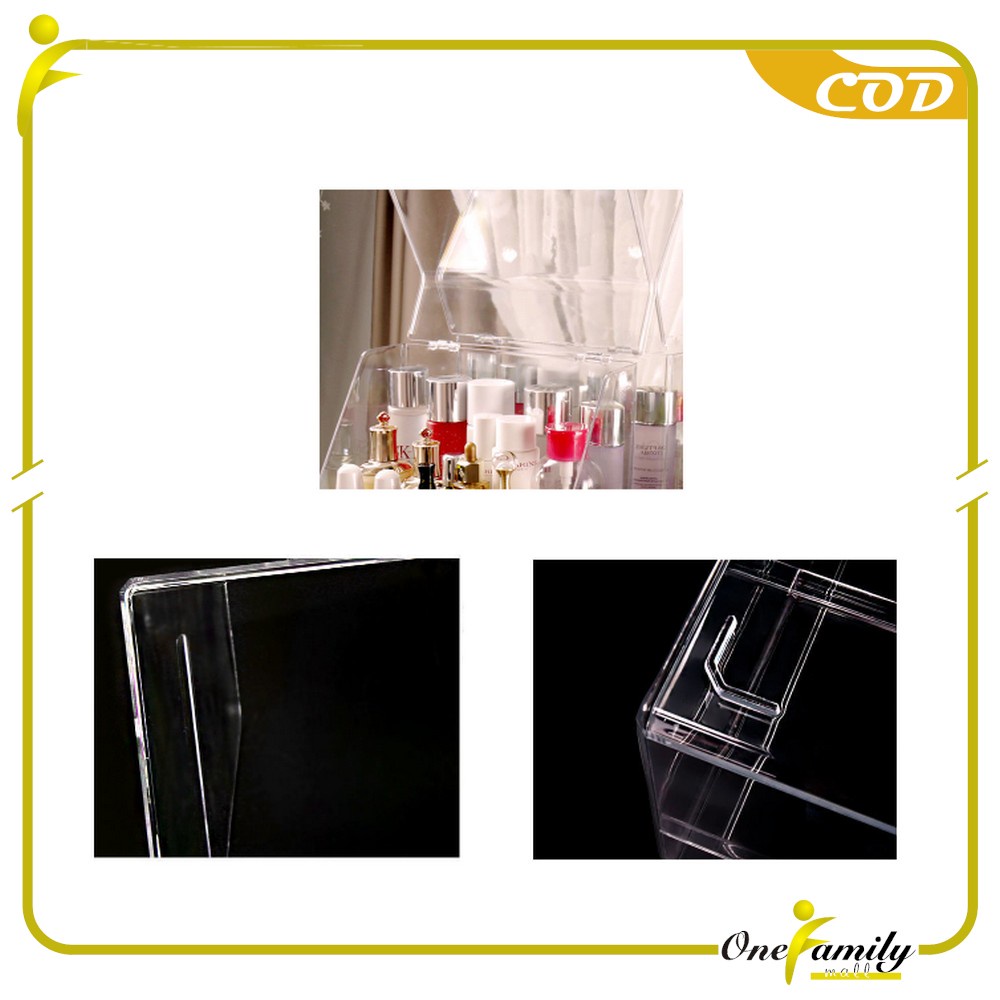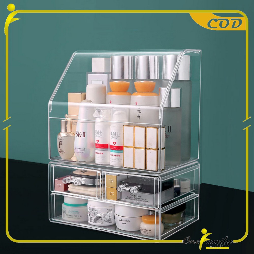 ONE-K133 Rak Kosmetik Acrylic Transparan Dengan Penutup Anti Debu Storage Box / Tempat Penyimpanan Laci Rak Make Up Skincare Organizer Laci Multifungsi