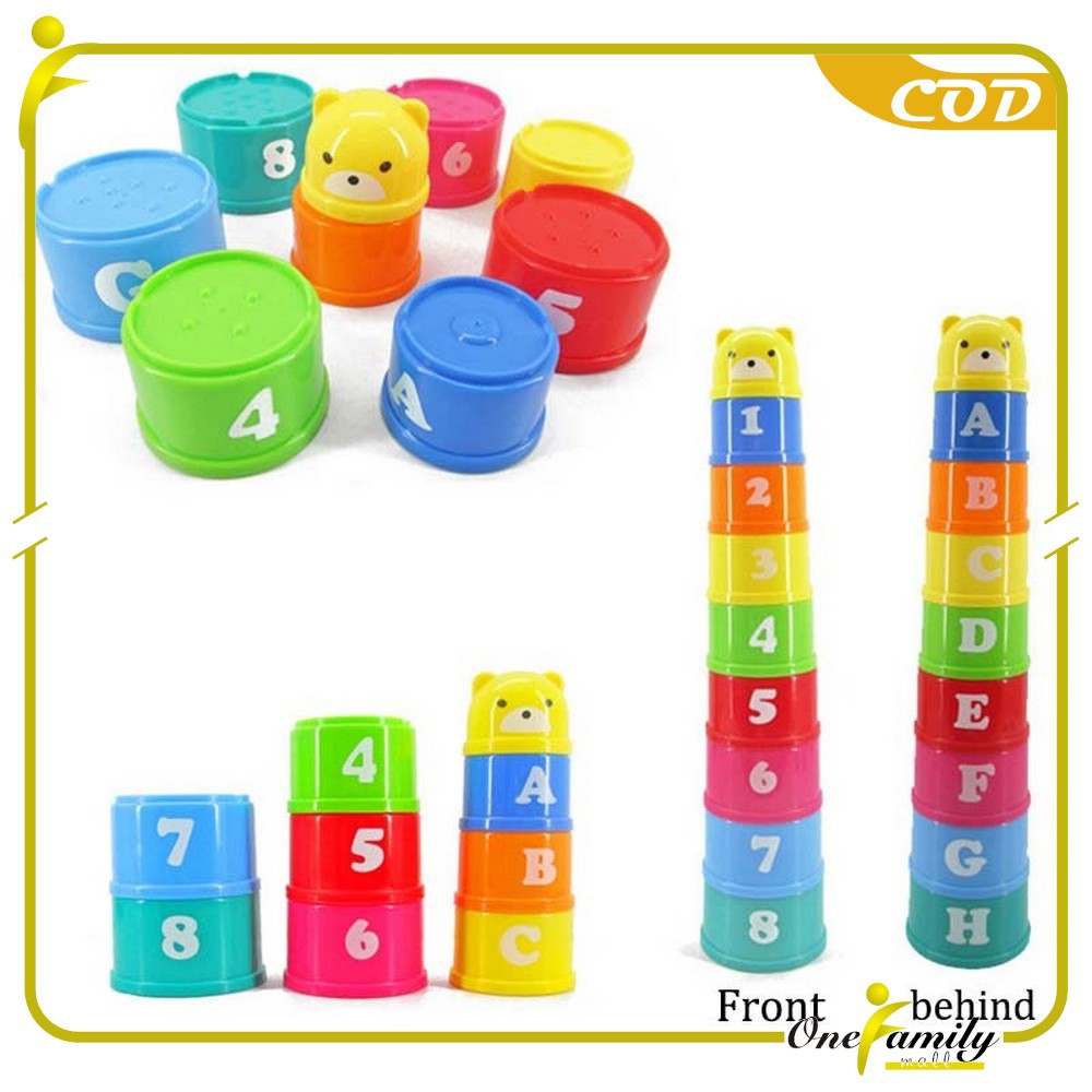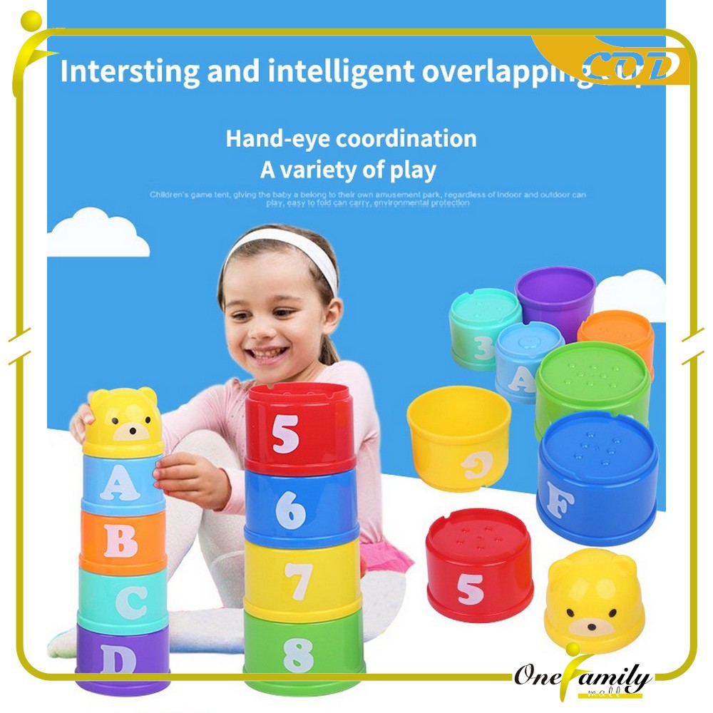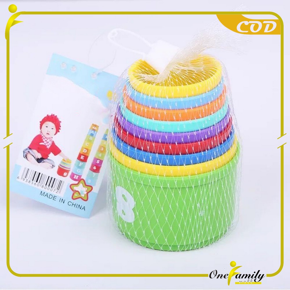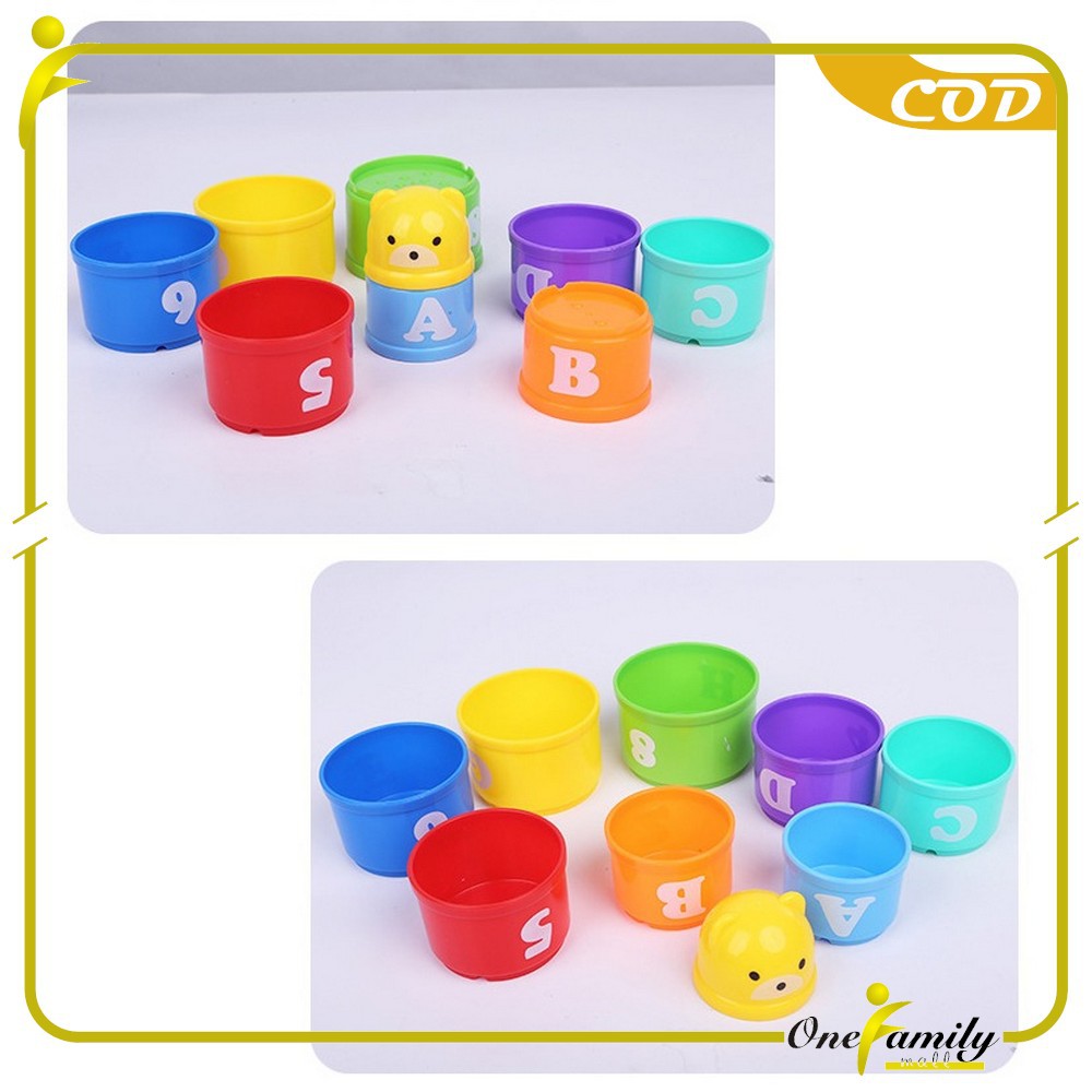 ONE-M21 Mainan Anak Stacking Cup / Mainan Susun Gelas 9PCS Mainan Edukasi Bayi Angka Dan Alfabet