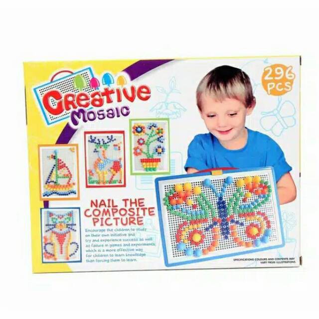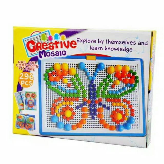 ONE-M14 Mainan Edukasi Anak Creative Mosaic Susun Paku 3D Puzzle Block Papan Paku Jamur 296pcs