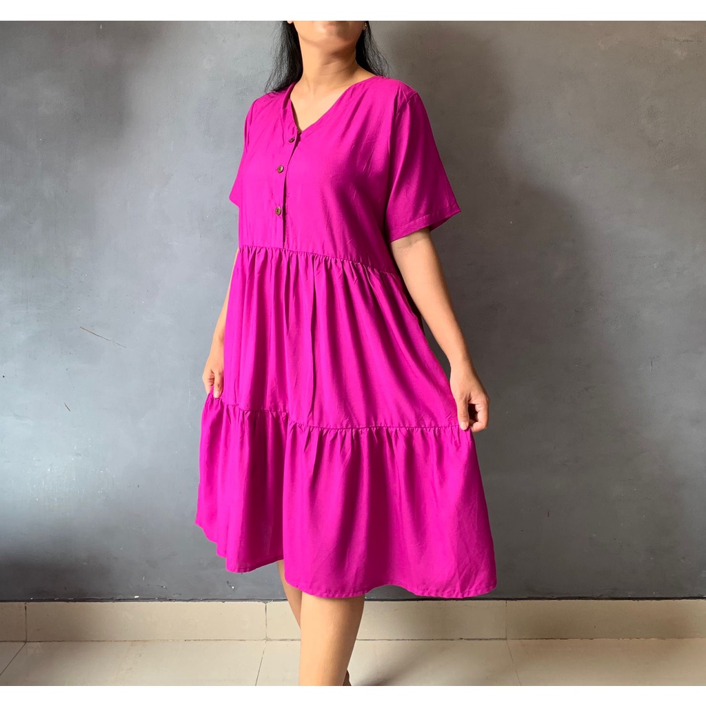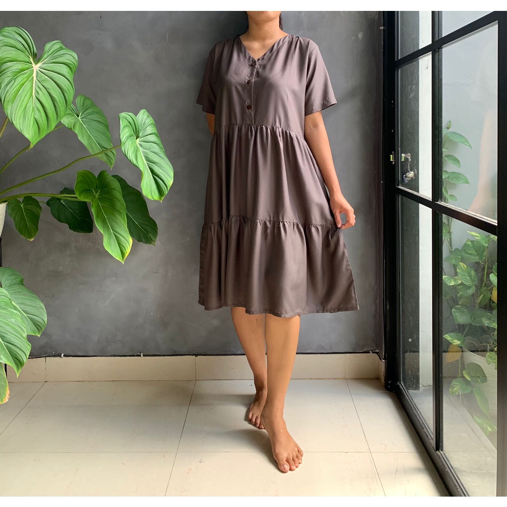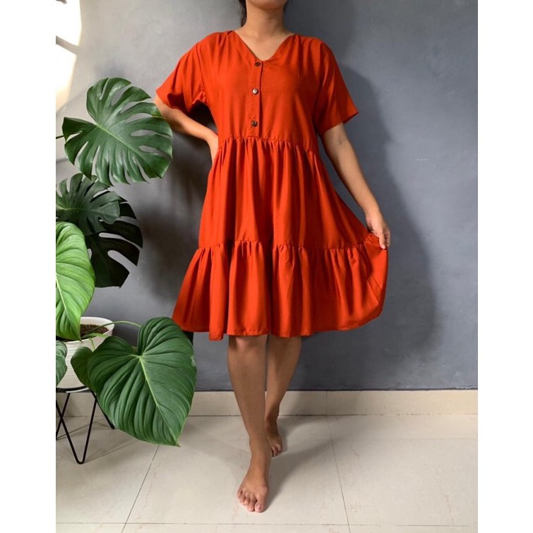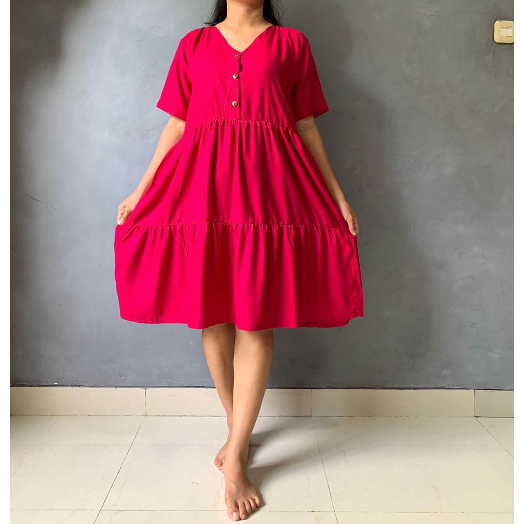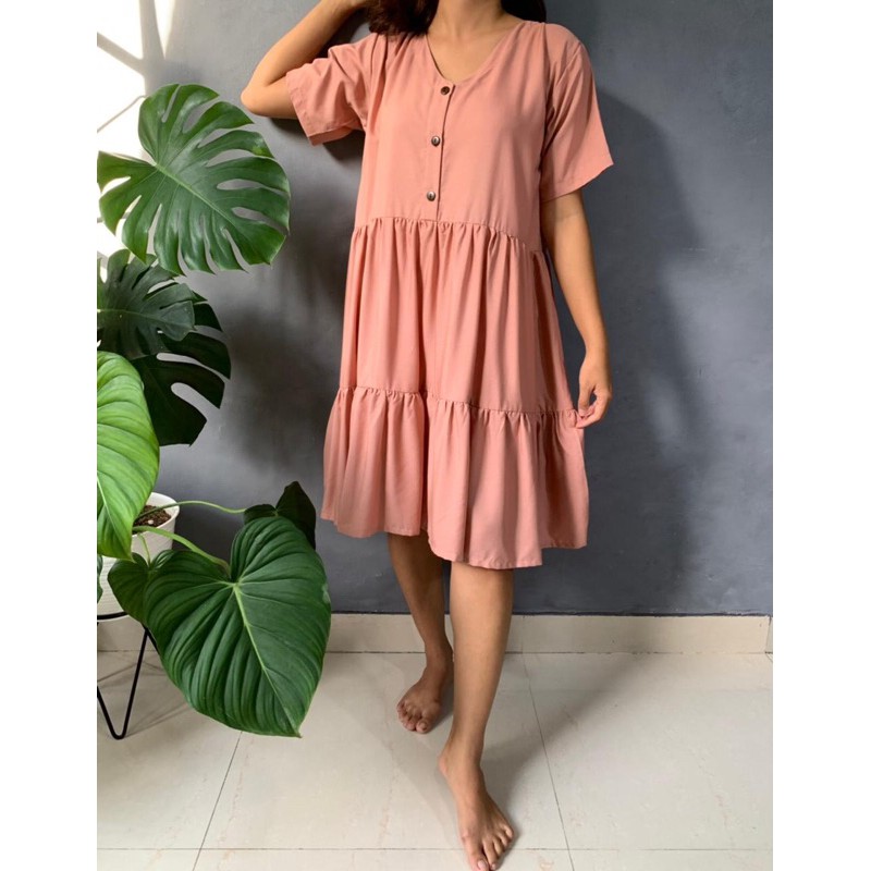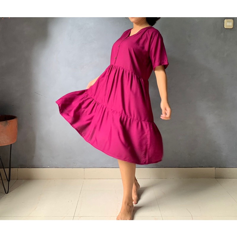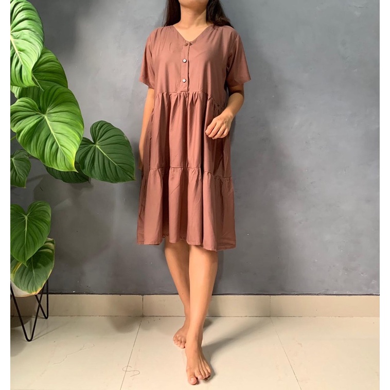 BISA COD Dress Rample Rayon Kancing Busui Basic/Pakaian Wanita