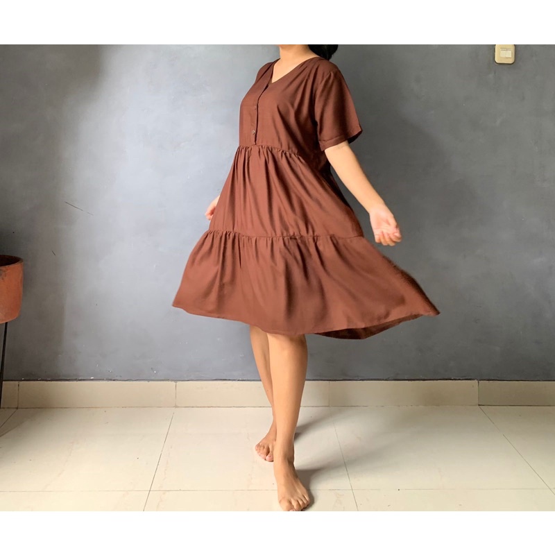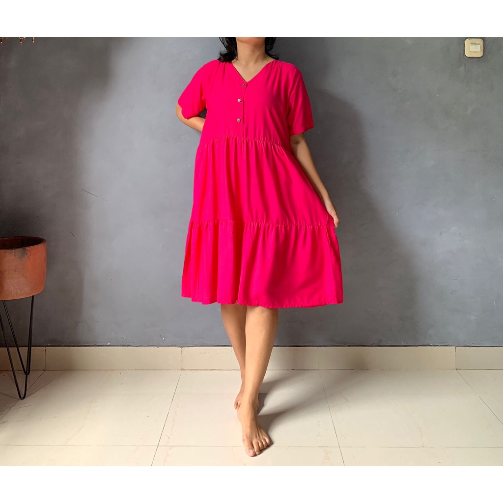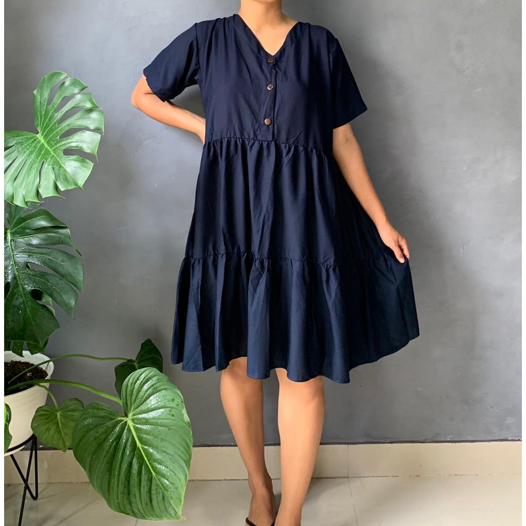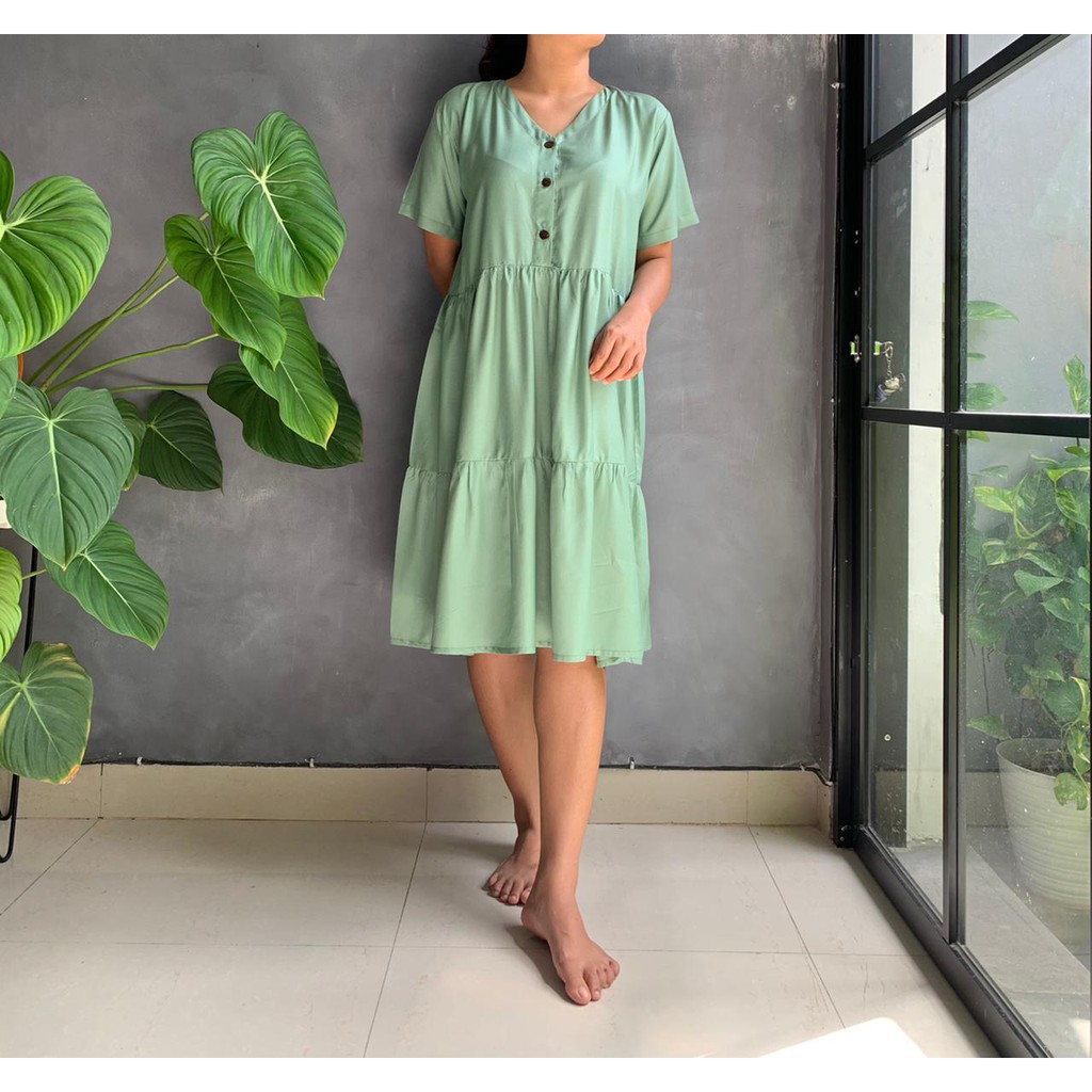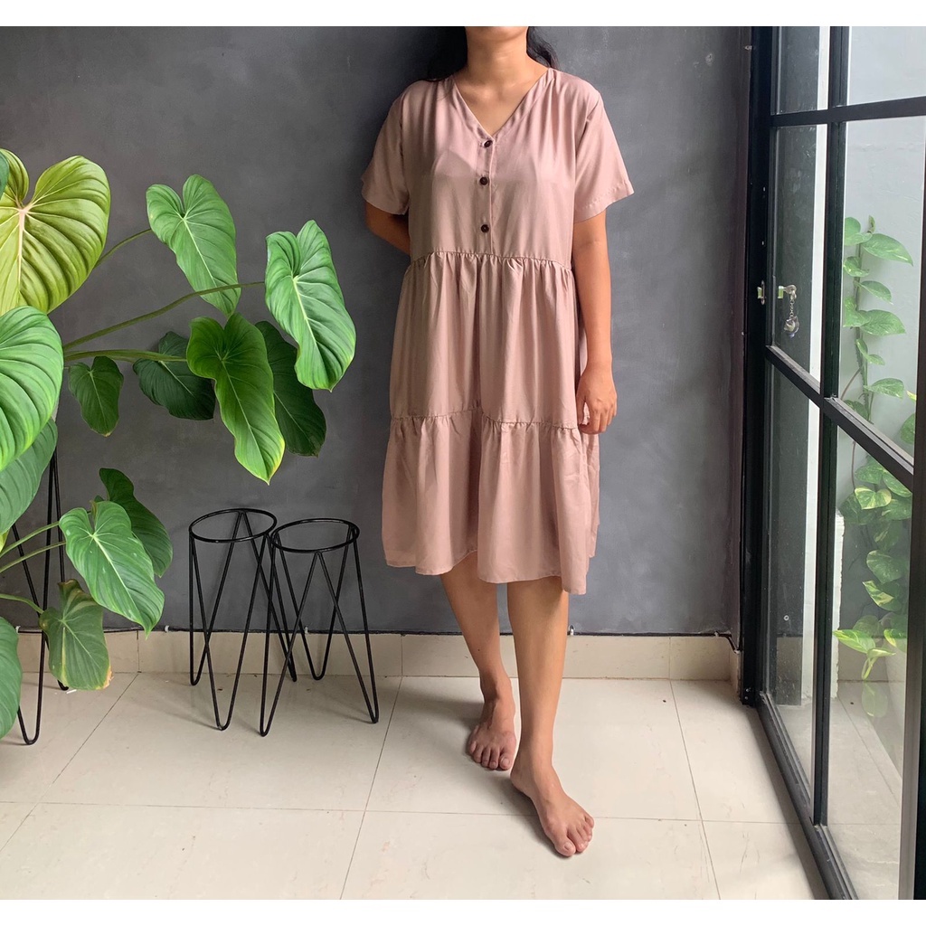 BISA COD Dress Rample Rayon Kancing Busui Basic/Pakaian Wanita