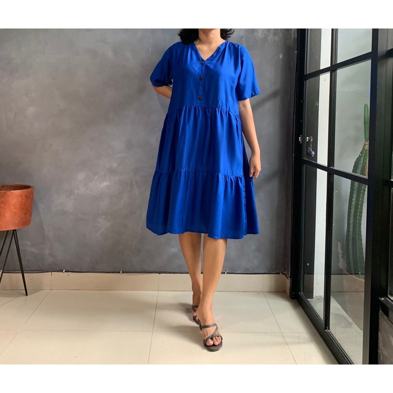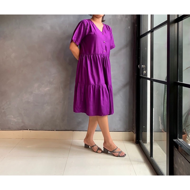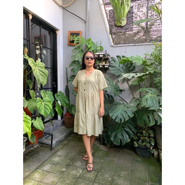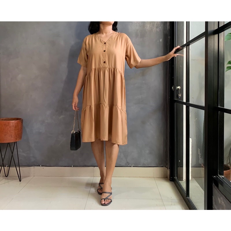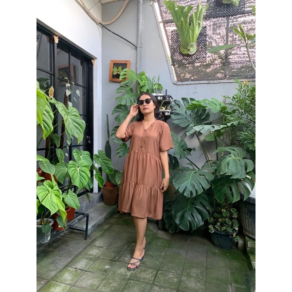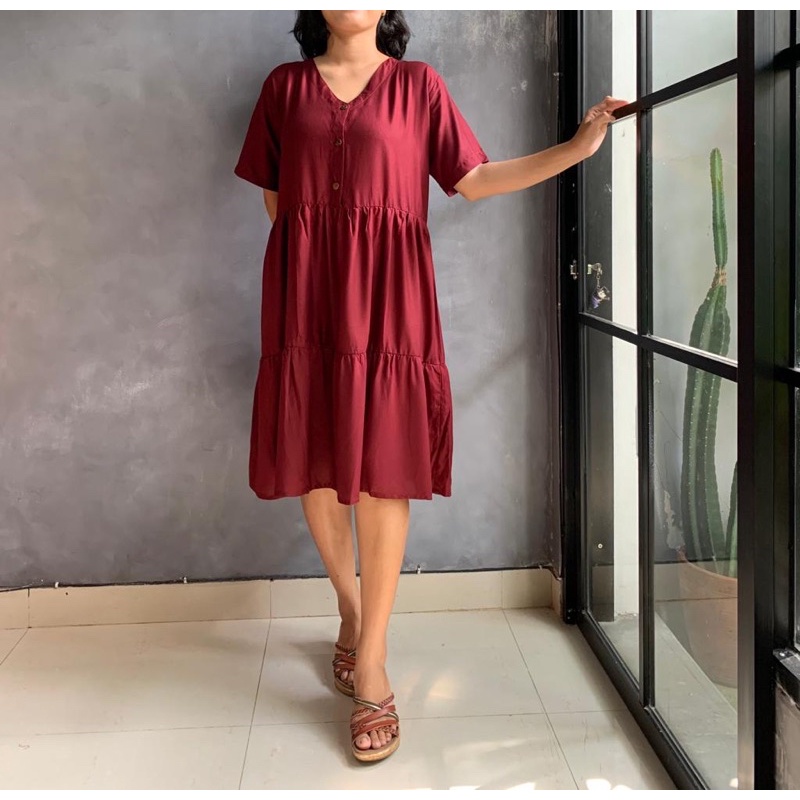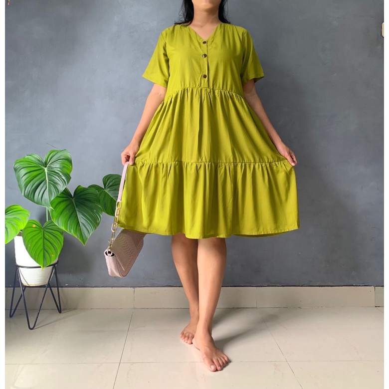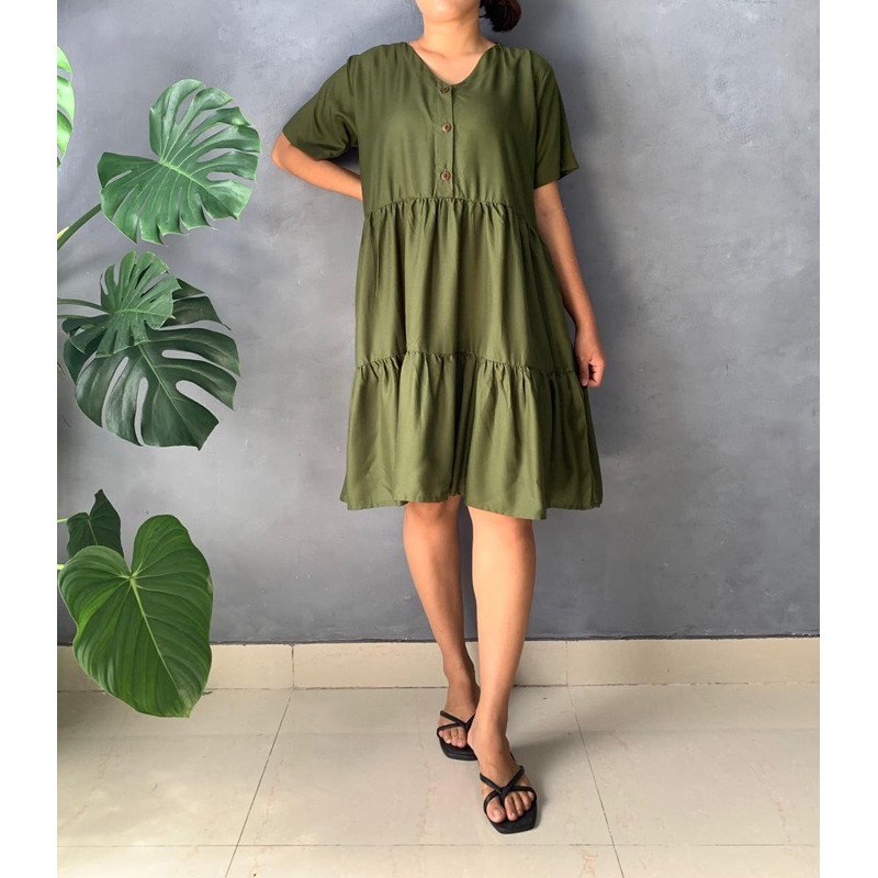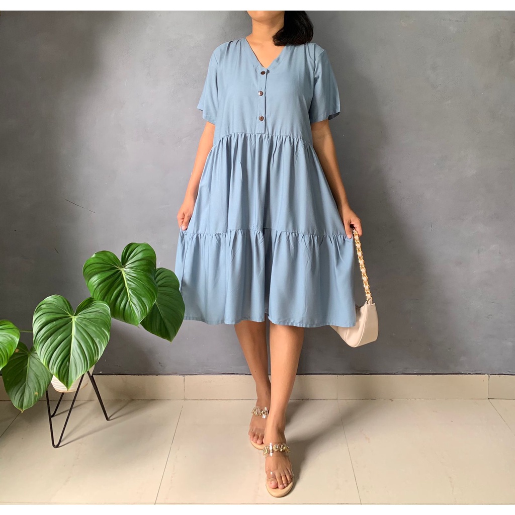 BISA COD Dress Rample Rayon Kancing Busui Basic/Pakaian Wanita