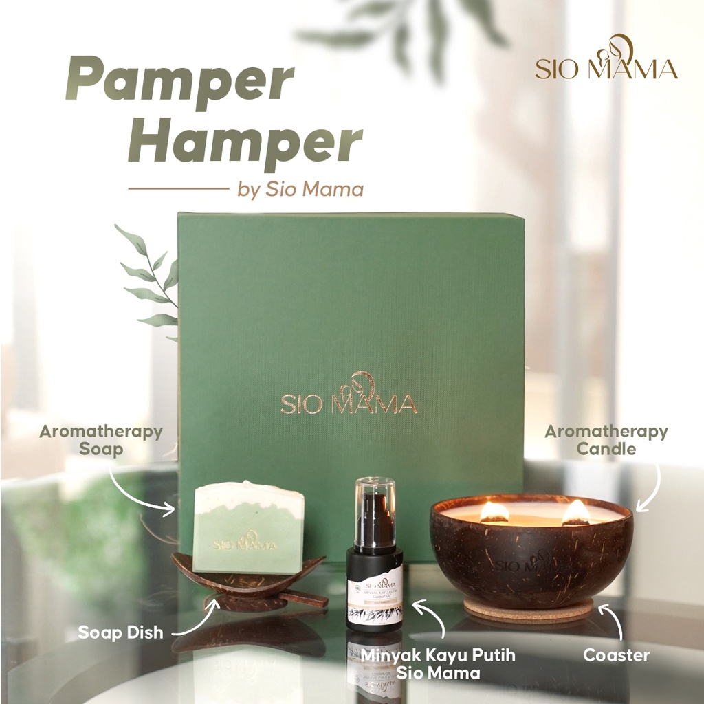 SIO MAMA Pamper Hamper | Gift | Kado | Hadiah | Scented Candle ( Lilin ) | Aromatherapy Essential Oil Soap ( Sabun ) | Soap Dish ( Tatakan Sabun )| Minyak Kayu Putih | Hampers by SIOMAMA