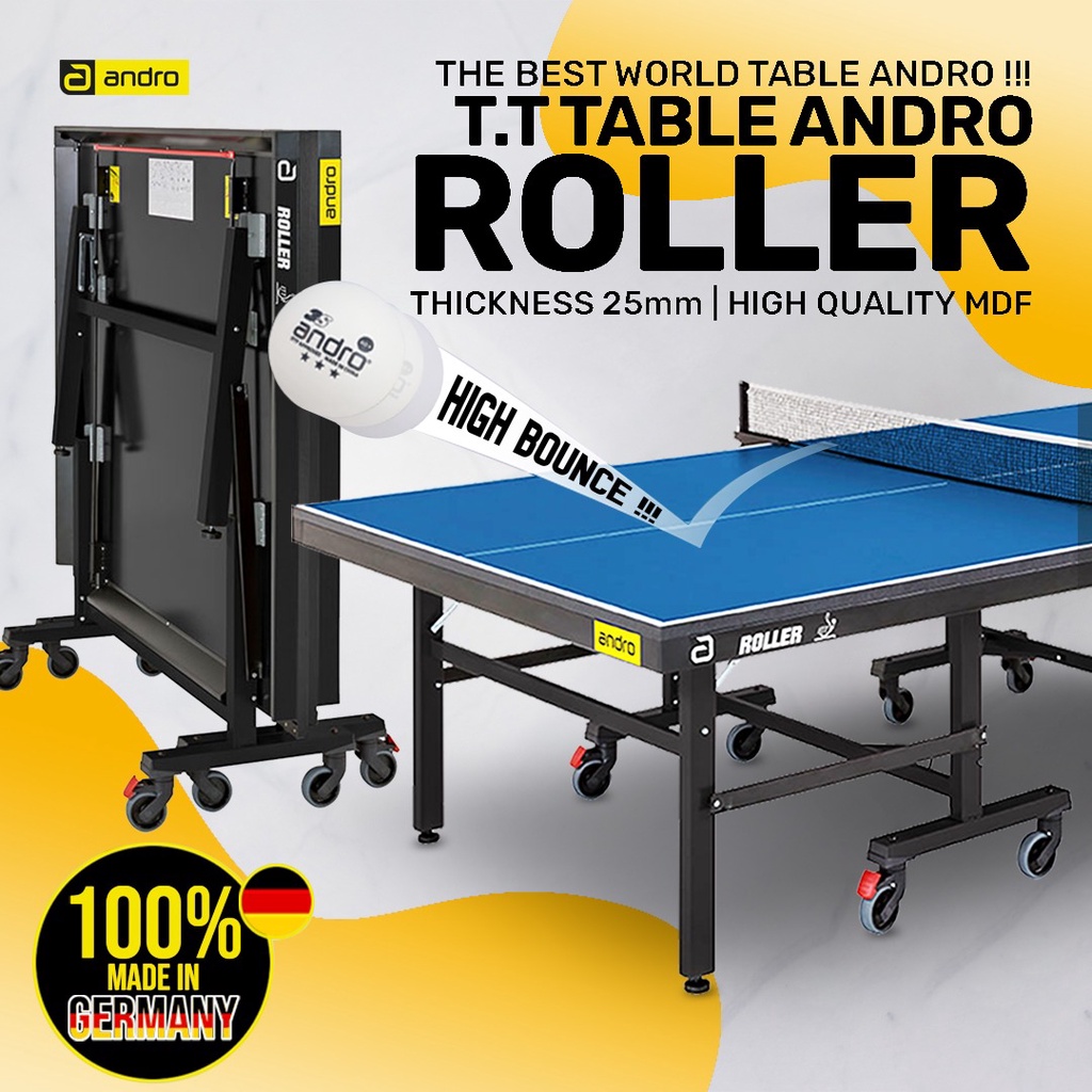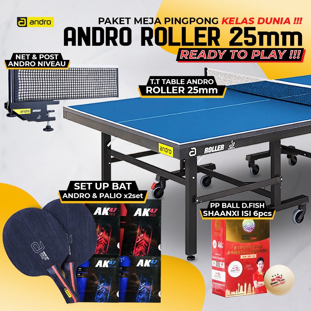 Meja Pingpong Tenis Meja Andro Roller ITTF 25mm + 2 Setup Bat Pingpong