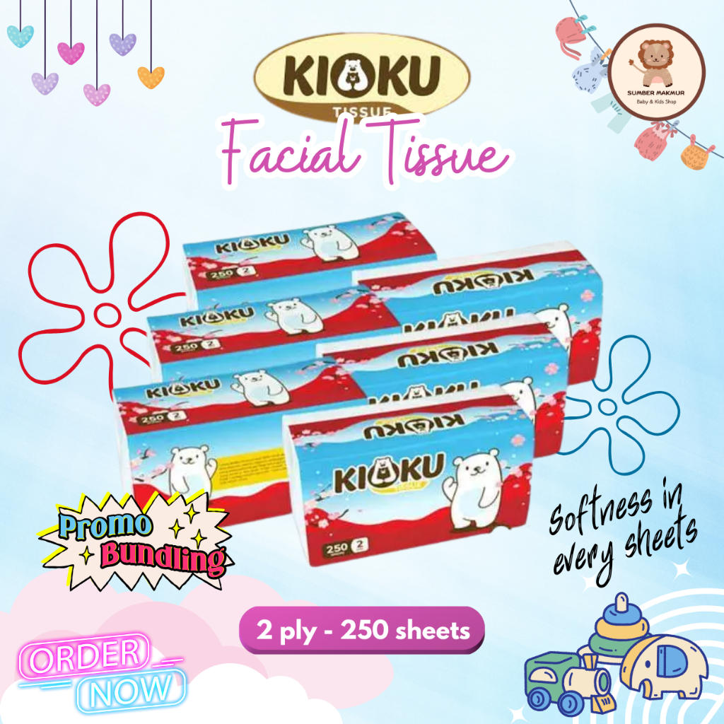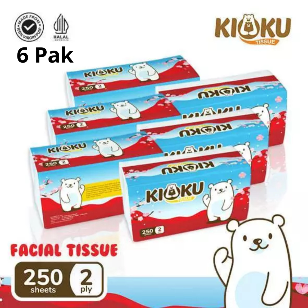 PAKET 6 PCS KIOKU Facial Tissue Softpack 250 Sheet 500 Helai 2 Ply Tisu Tissue Wajah Tidak Mudah Sobek