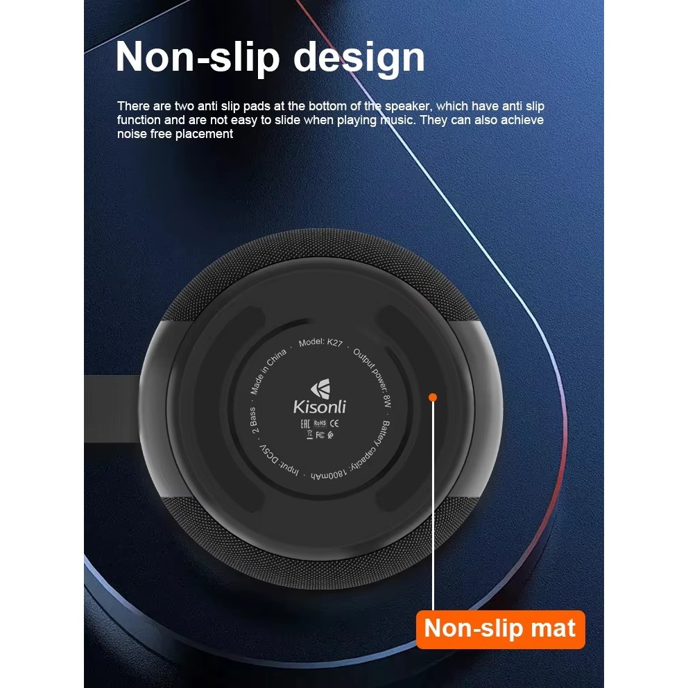 KISONLI K27 Speaker Bluetooth 5.4 Portable RGB Light TWS Stereo Charging Type-C dengan Gantungan Hook