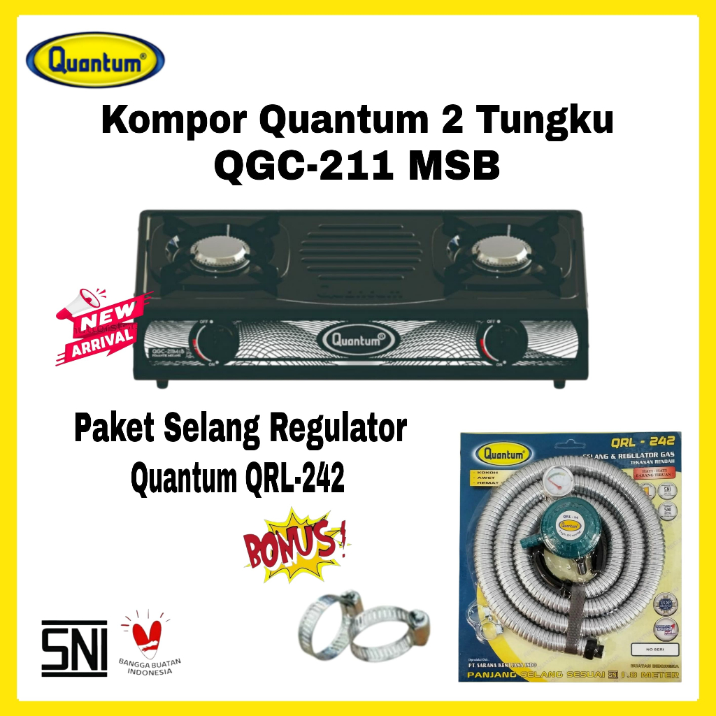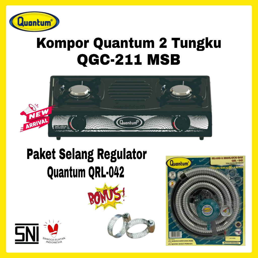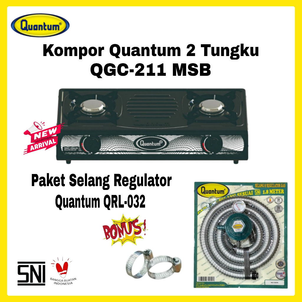 Paket Kompor Gas Quantum 2 Tungku QGC-201 DMPB/ QGC-211 MSB/ BONUS Selang Regulator Gas Quantum QRL-042