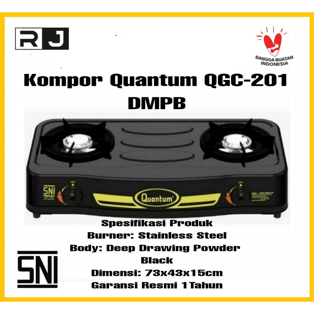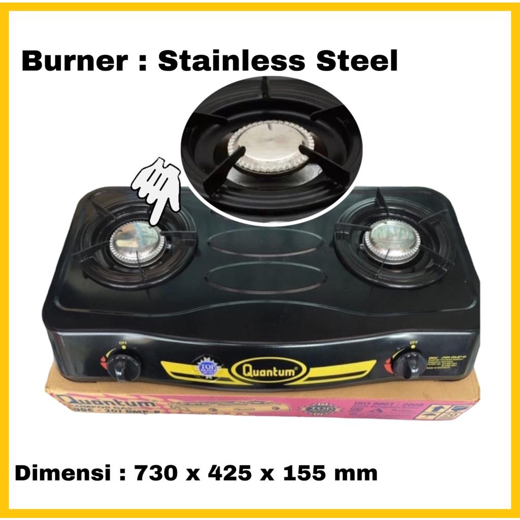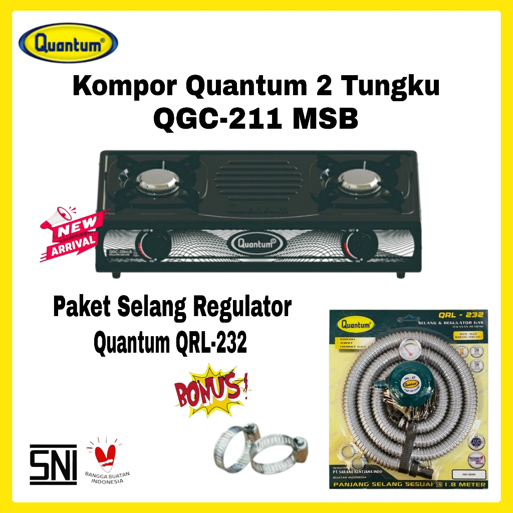 Paket Kompor Gas Quantum 2 Tungku QGC-201 DMPB/ QGC-211 MSB/ BONUS Selang Regulator Gas Quantum QRL-042