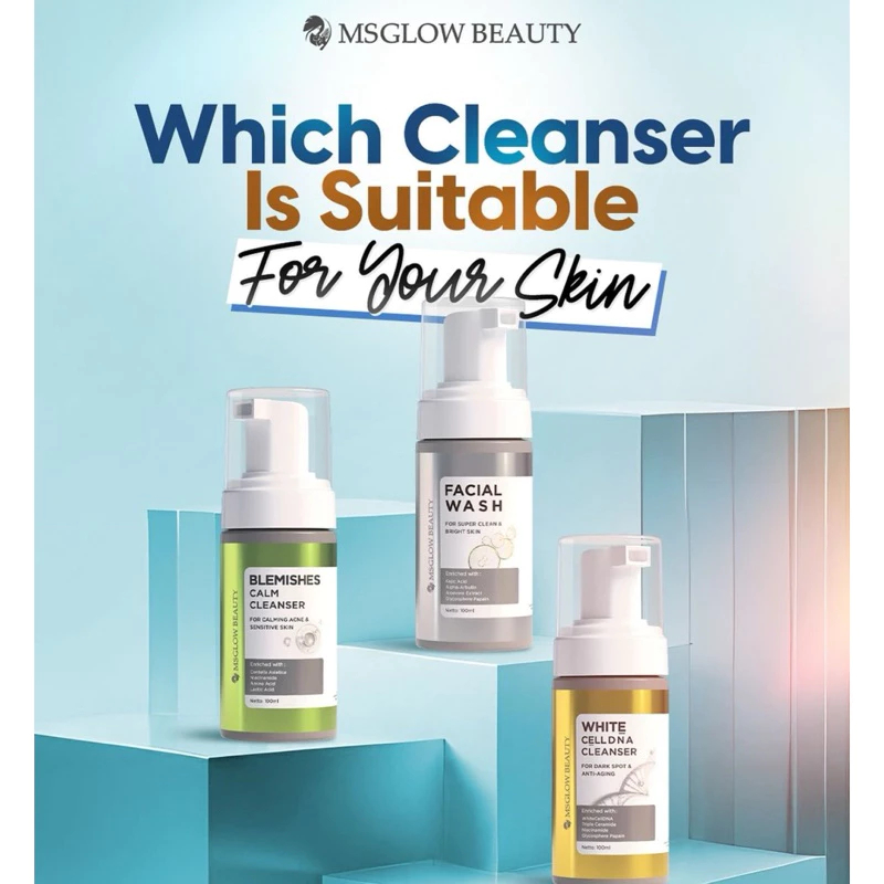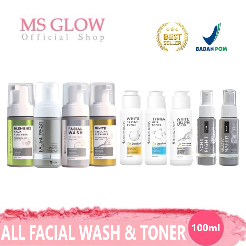MS GLOW ECER FACIAL WASH | BRIGHTENING | BLEMISHES CALM CLEANSER | WHITE CELL DNA | TONER GLOW MAKER | ACNE FIGHT | HYDRA MILK | WCD | CAVIAR | DARK SPOT DTE SALMON CENTELLA MINI DAY NIGHT CREAM |