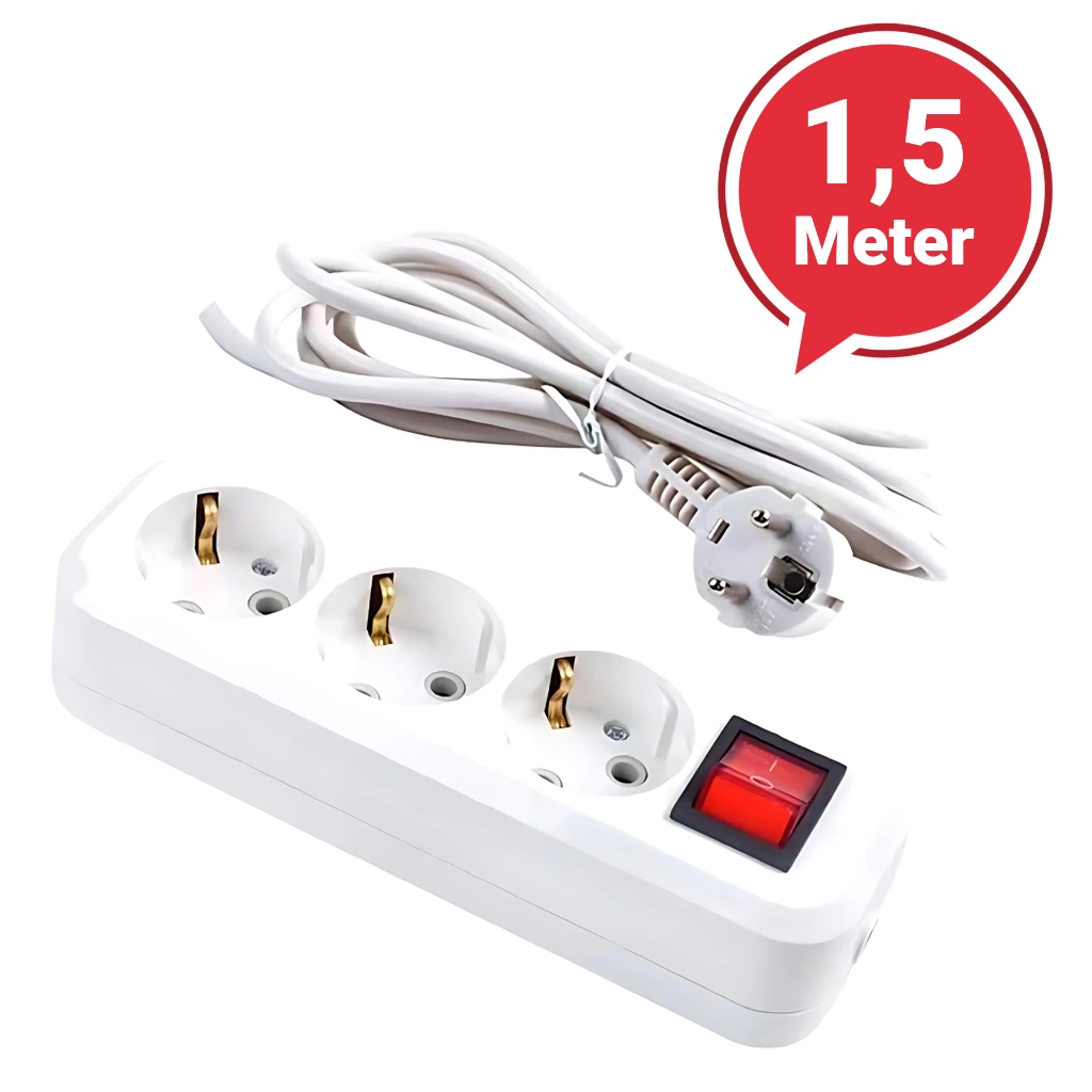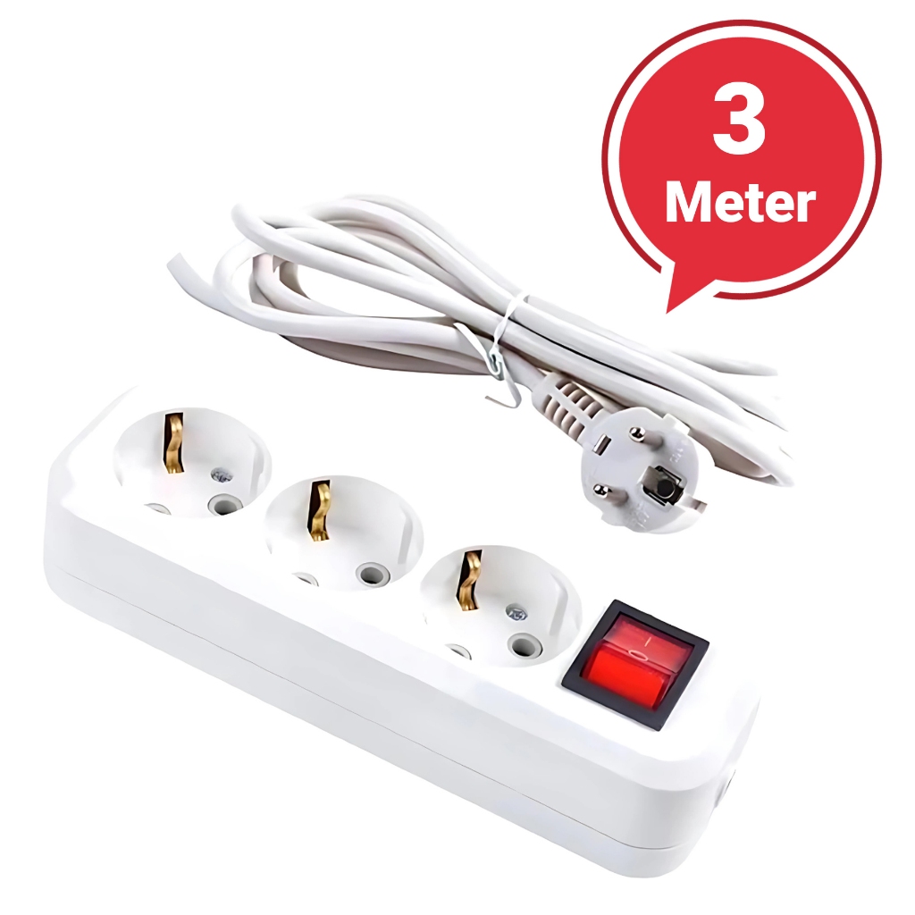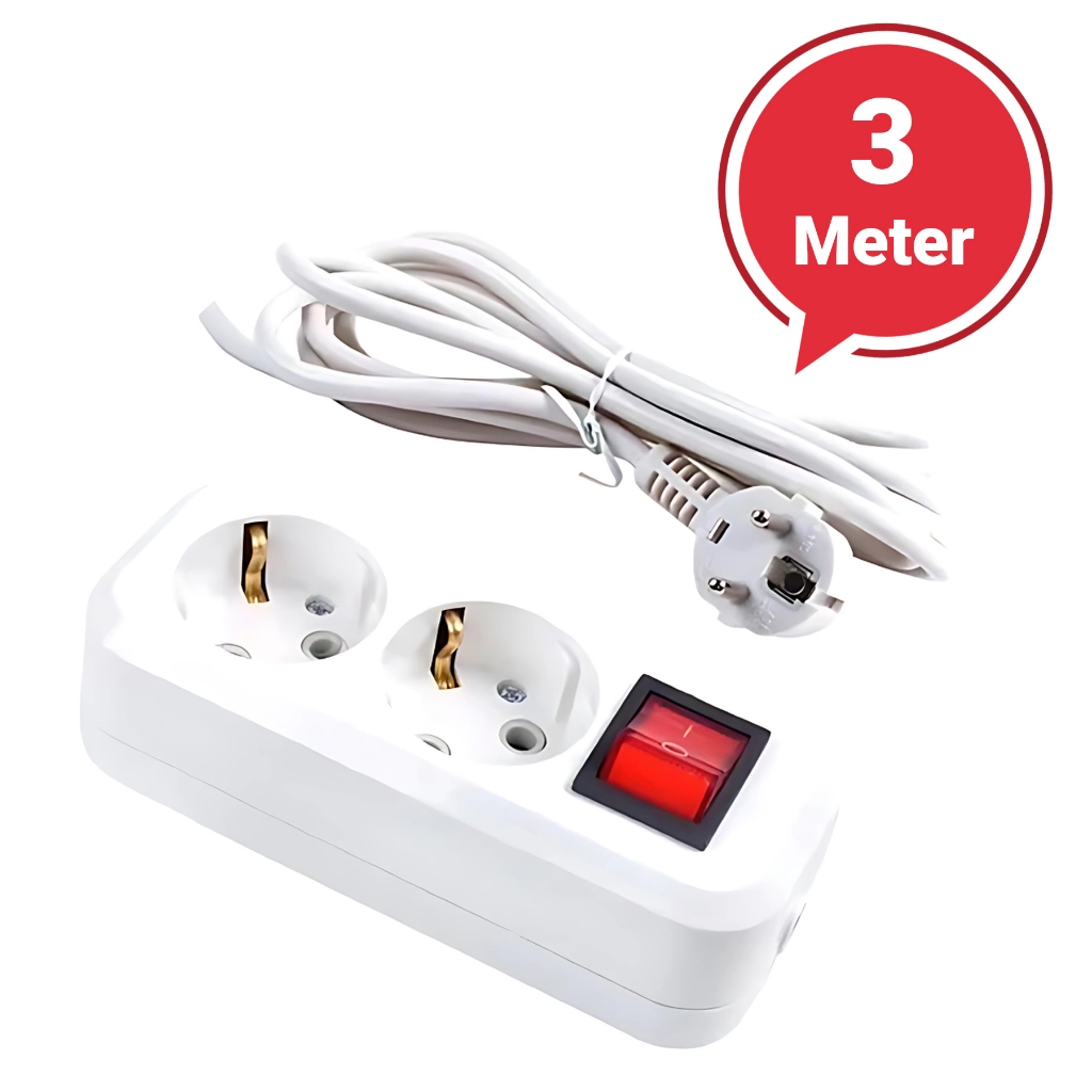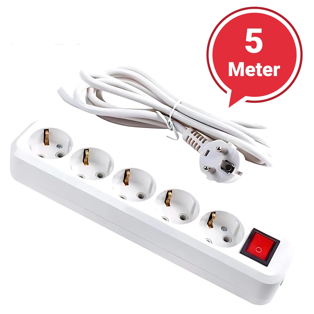STOP KONTAK KABEL 1.5/3/5 /10METER 2/3/4/5 LUBANG BER-SNI Stop Kontak Putih/Hitam