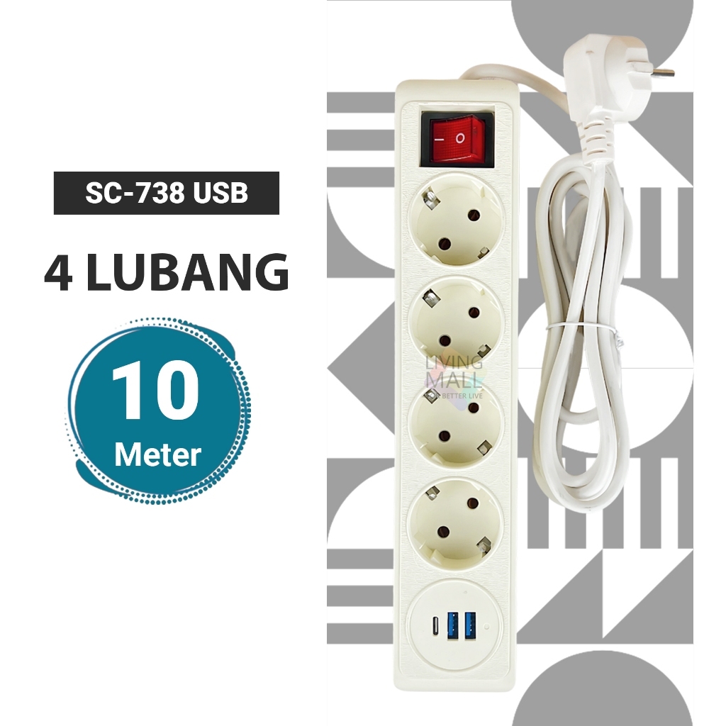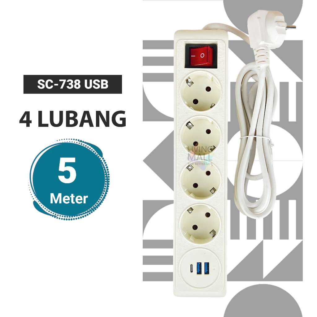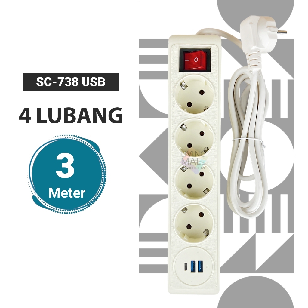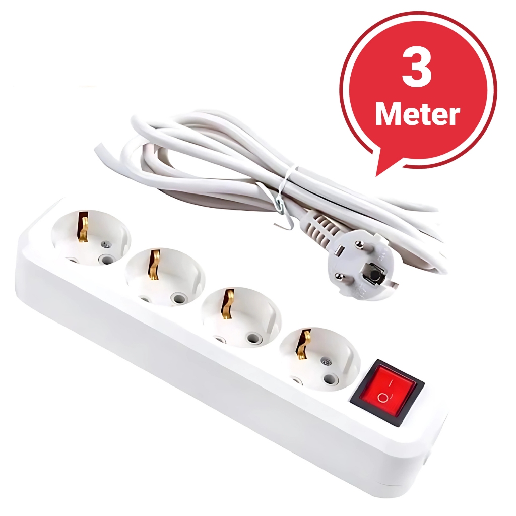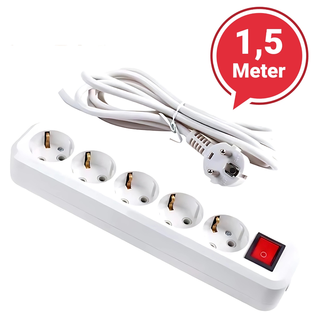 STOP KONTAK KABEL 1.5/3/5 /10METER 2/3/4/5 LUBANG BER-SNI Stop Kontak Putih/Hitam