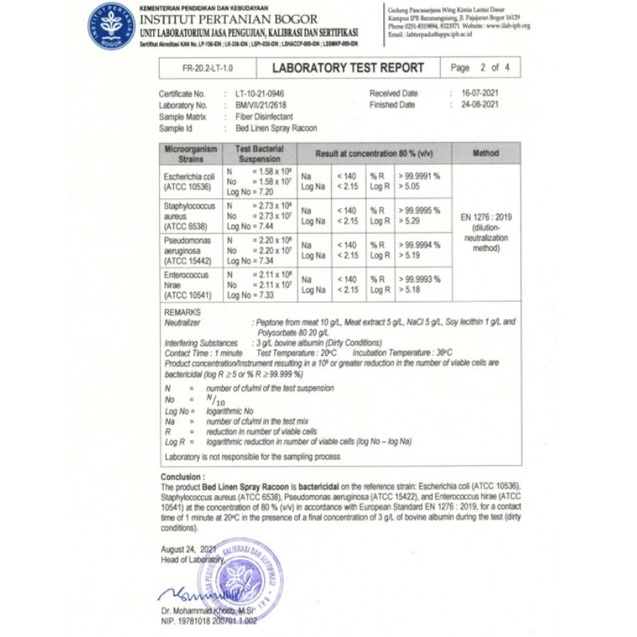 Racoon Bed Linen Spray / Anti Bacterial & Virus / Essential Oil RACOON250ml FREE TRAVEL SIZE 60 ML