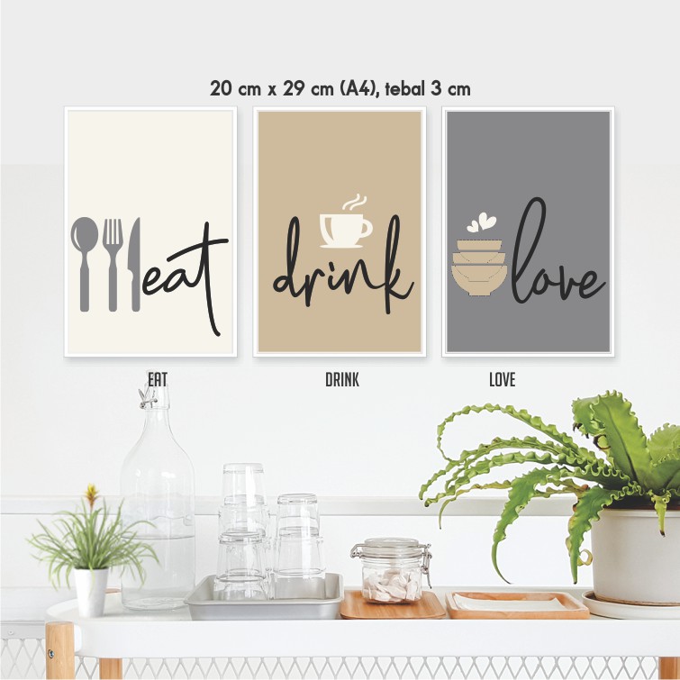 Hiasan Dinding Dapur Wall Decor Kitchen Eat Drink Love Modern Minimalis (Ukuran 20 cm x 29 cm)