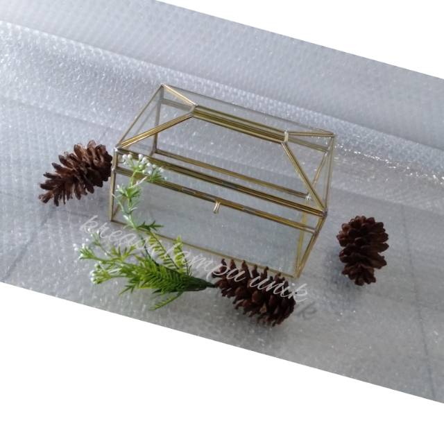 tempat tissue kaca dan kuningan / BOX TERRARIUM TEMPAT TISUE / BOX TISSUE /kotak tisu kaca KLU02