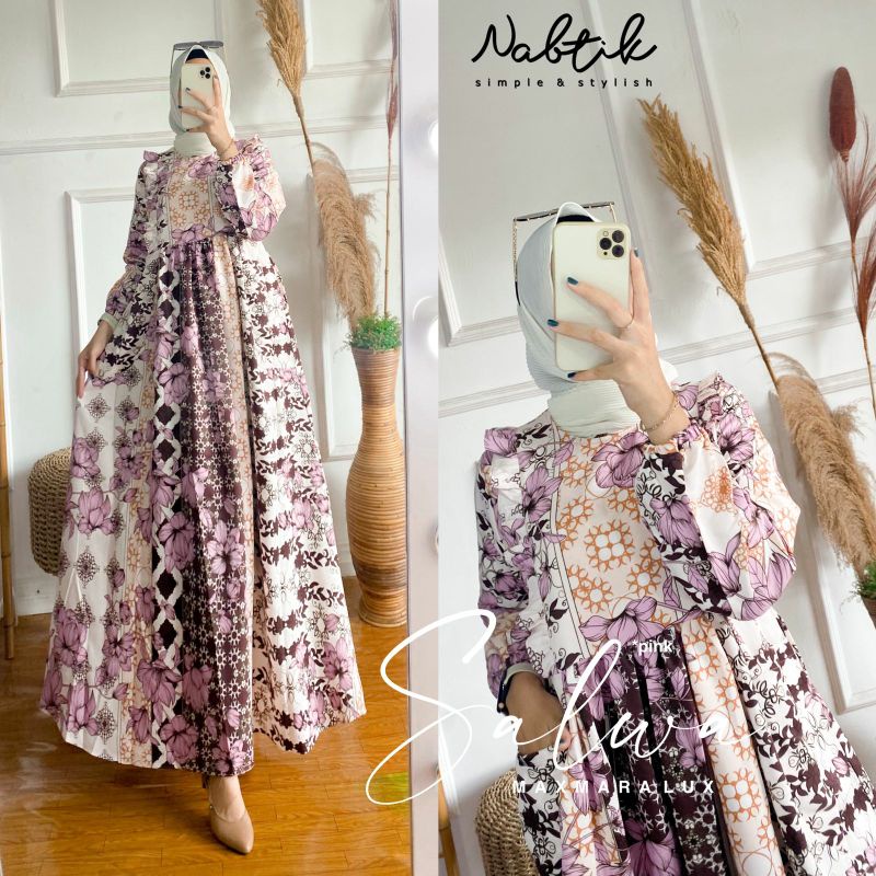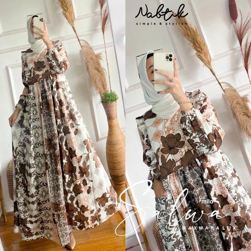 Salwa Dres midi Dress motif kekinian original produk by NABTIK