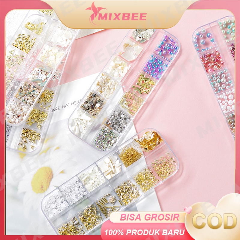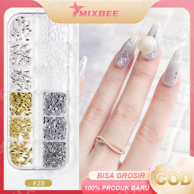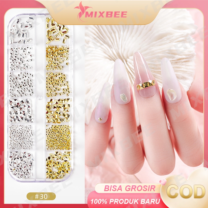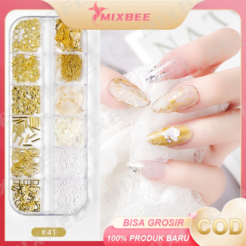 12 Aksesoris Hiasan Nail Art kuku palsu manik-manik sequins pearl mix silver gold / Seni Kuku Emas Logam Gaya Campuran Punk Metallic 3D Moon Starfish Nail Art