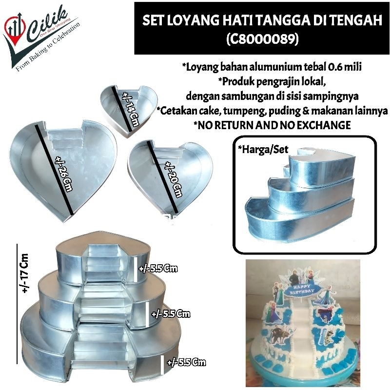 baking kitchen tool alat dapur loyang bahan alumunium tebal set bentuk hati love heart bulat round tangga susun cetakan mold cake kue bolu tumpeng nasi rice bento puding nutrijel jeli agar oven panggang kukus
