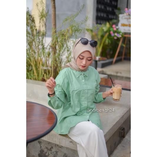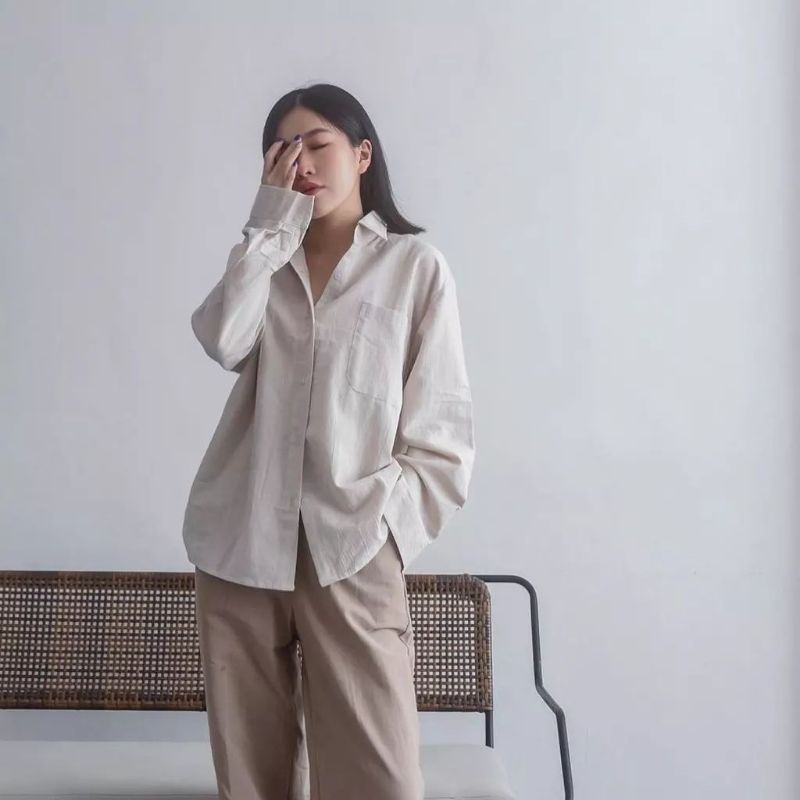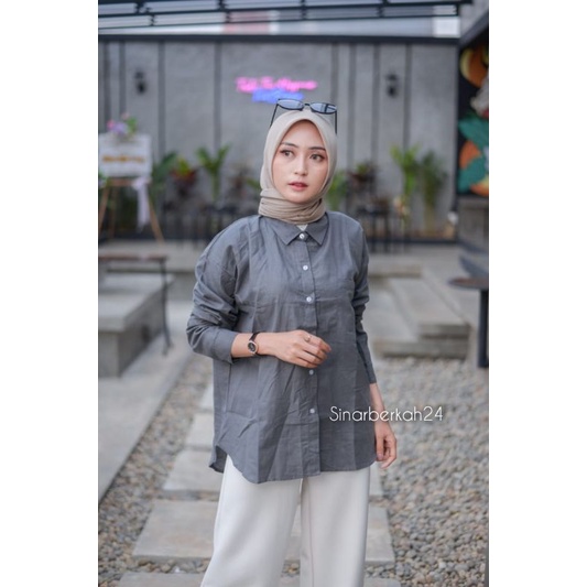 Olivia Shirt - Kemeja Oversize Linen Wanita - Kemeja Linen - Oversized Shirt Linen