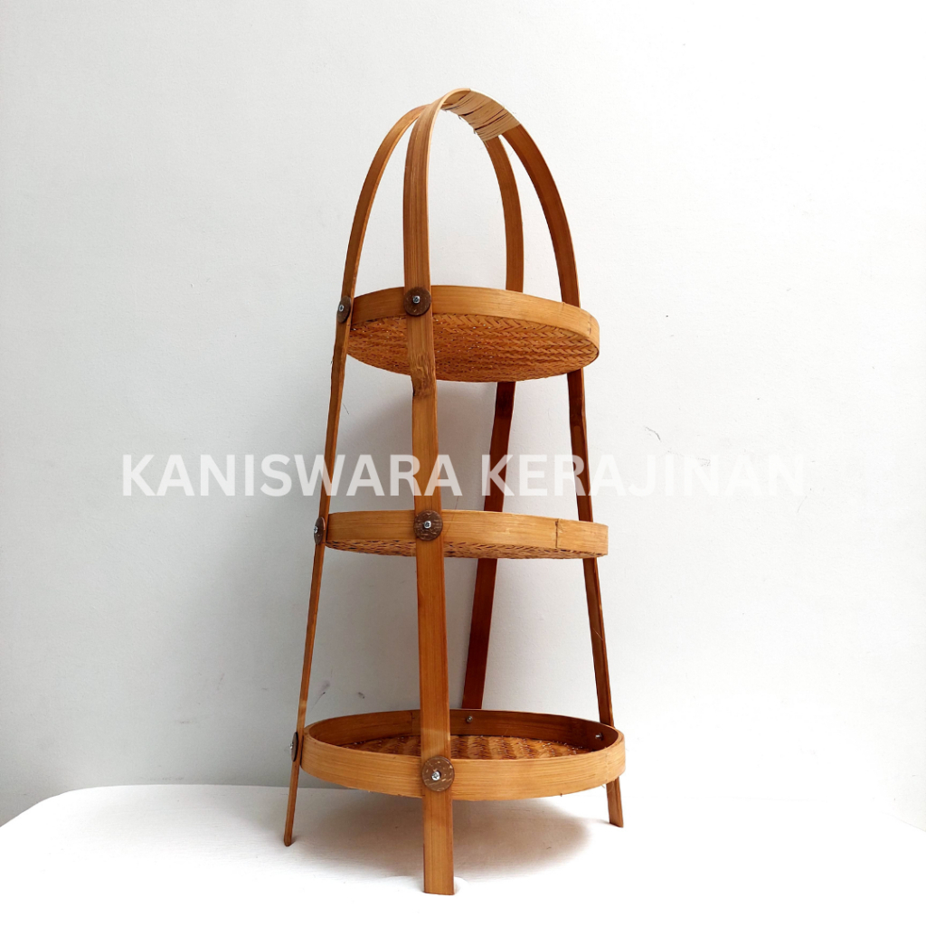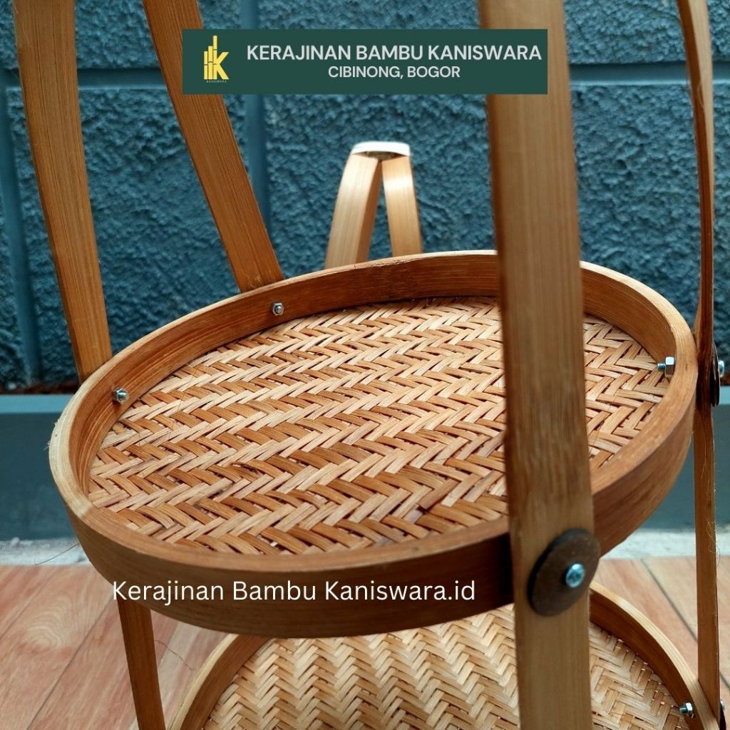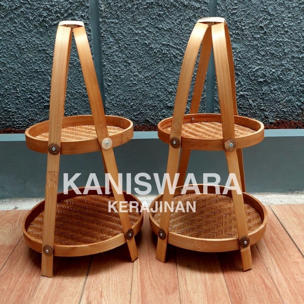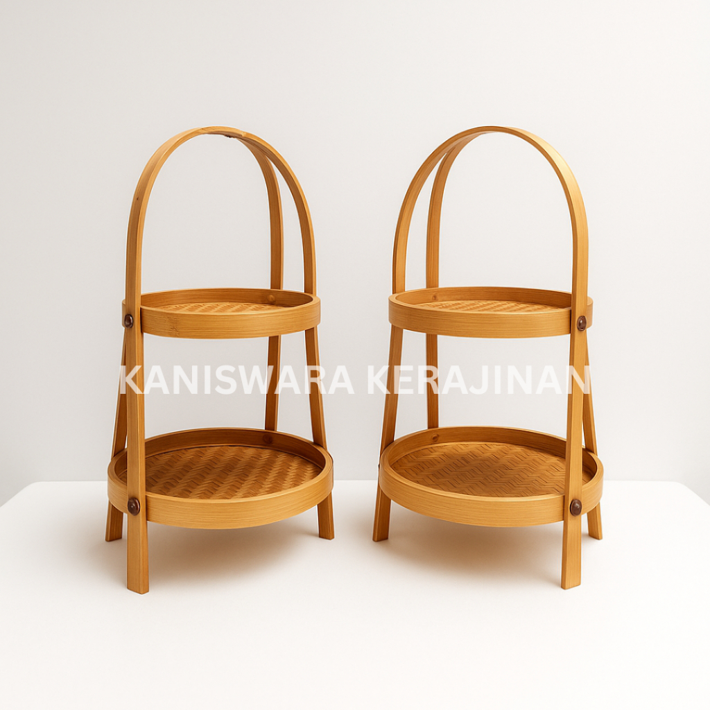 Rak Susun Bambu Premium | Rak Saji Cemilan Kue Kering / Free-standing Bamboo Rack Organizer 2 Tier
