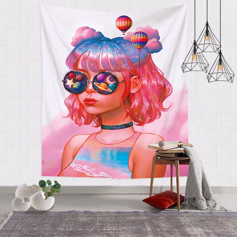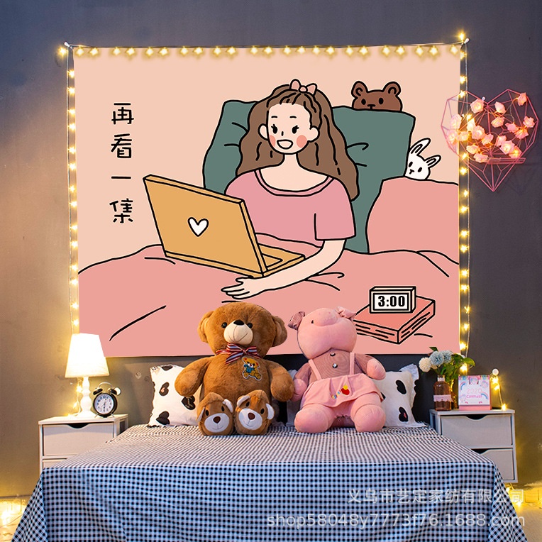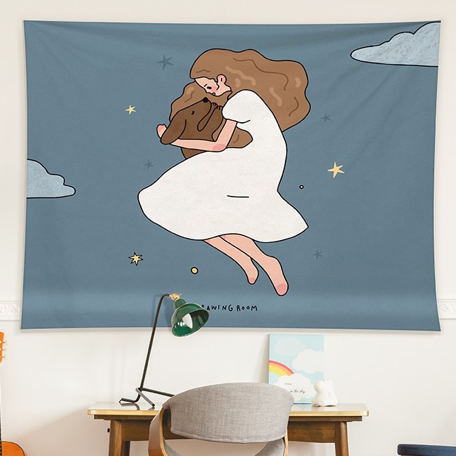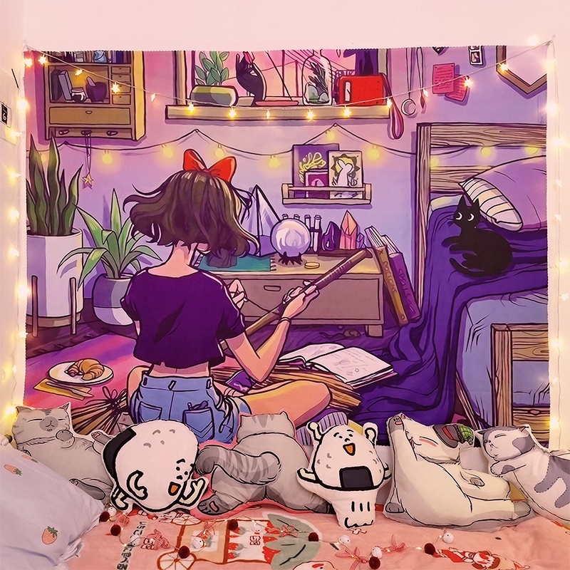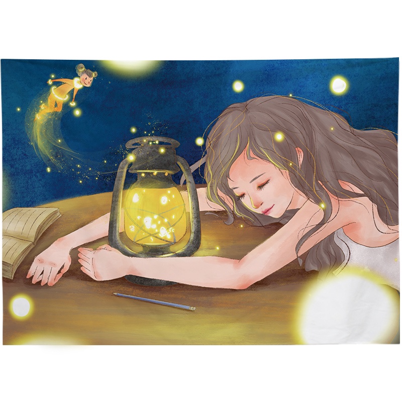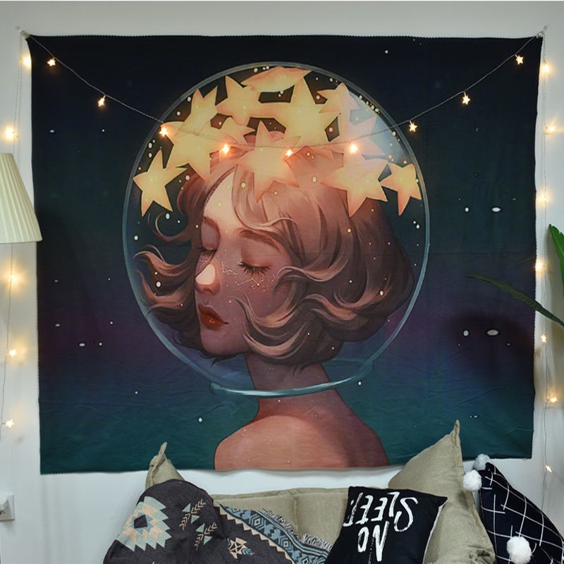 Kain Dinding Wall Hanging Cloth Girls Series dengan Lampu Hias LED