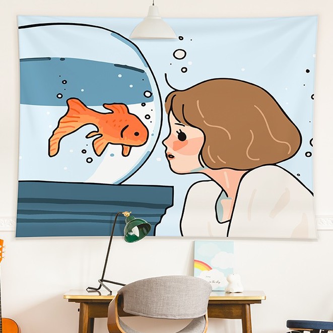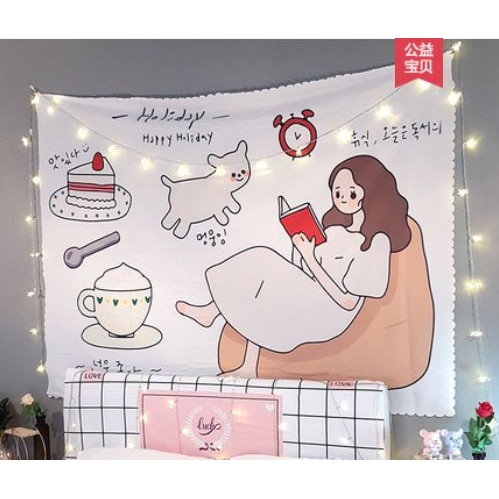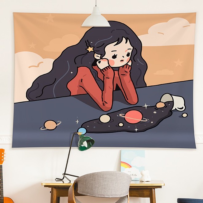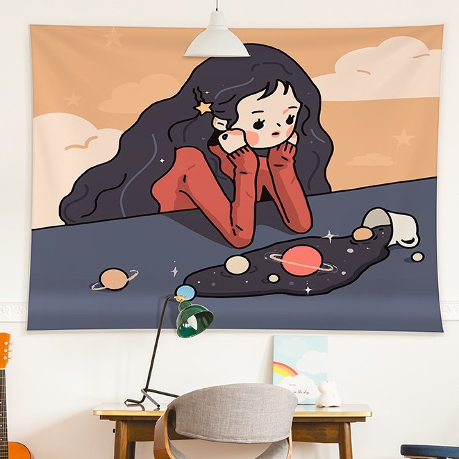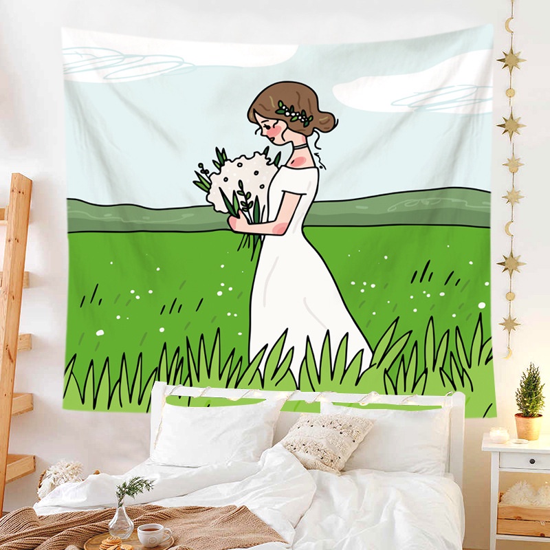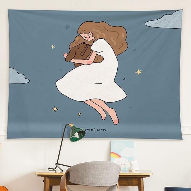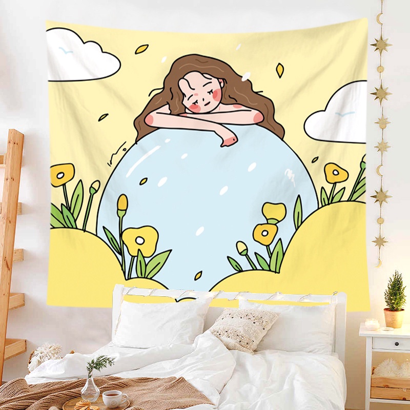 Kain Dinding Wall Hanging Cloth Girls Series dengan Lampu Hias LED