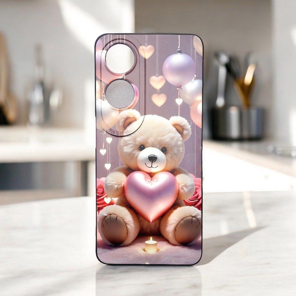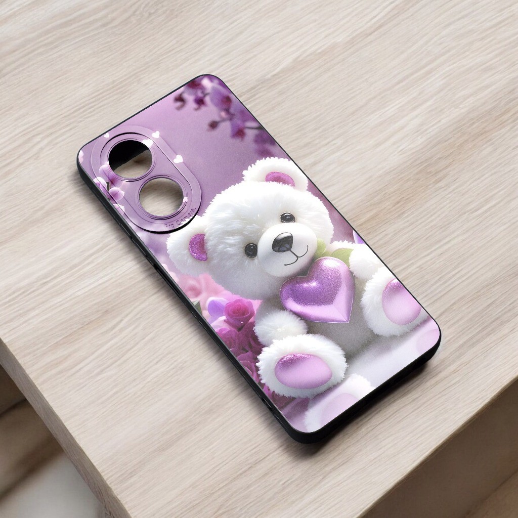 Case Boneka Hp Oppo A60 A38 A35 A18 A17 A98 A79 A78 5G A57 A77s A16 A54s A53 A15s A76 4G - Softcase Beruang Karet Hitam Lentur Tebal Pro Camera
