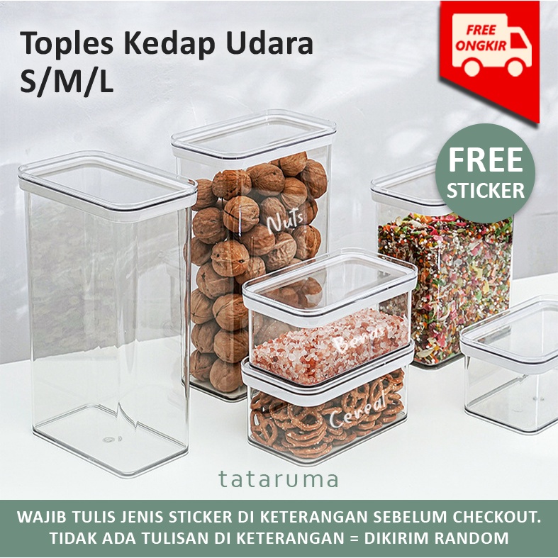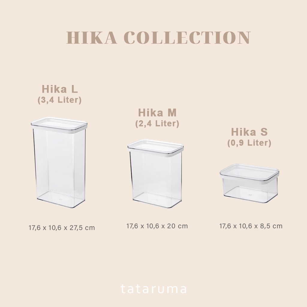 TATARUMA Hika - Toples Transparan Kedap Udara Airtight Minimalis Kotak Kontainer Tempat Penyimpanan Makanan Sayur Buah Daging Kulkas Fridge Freezer Food Storage Container Organizer