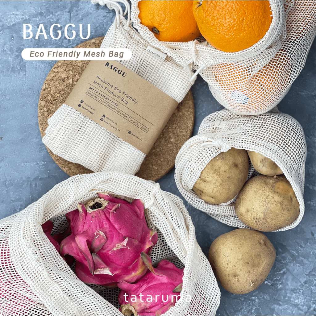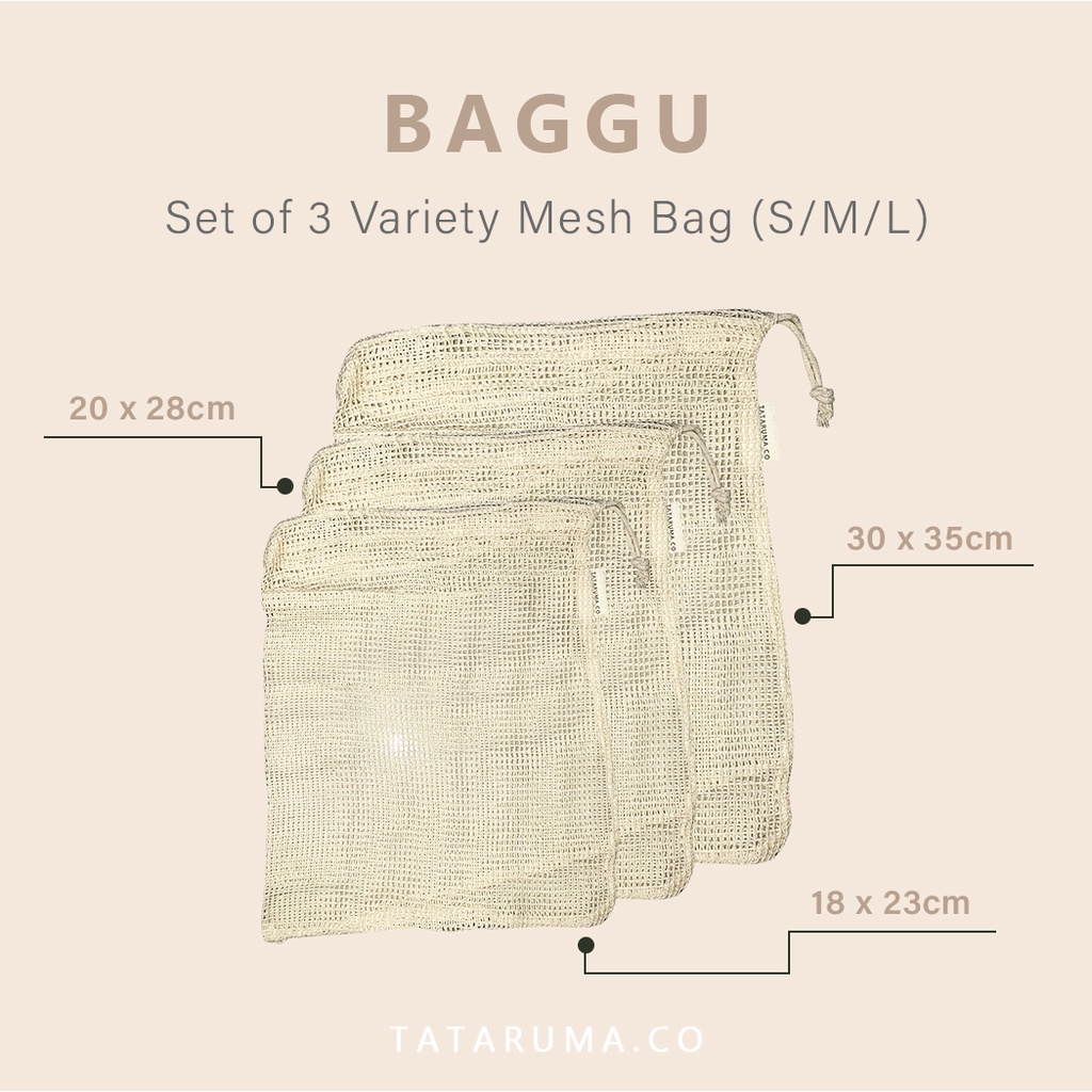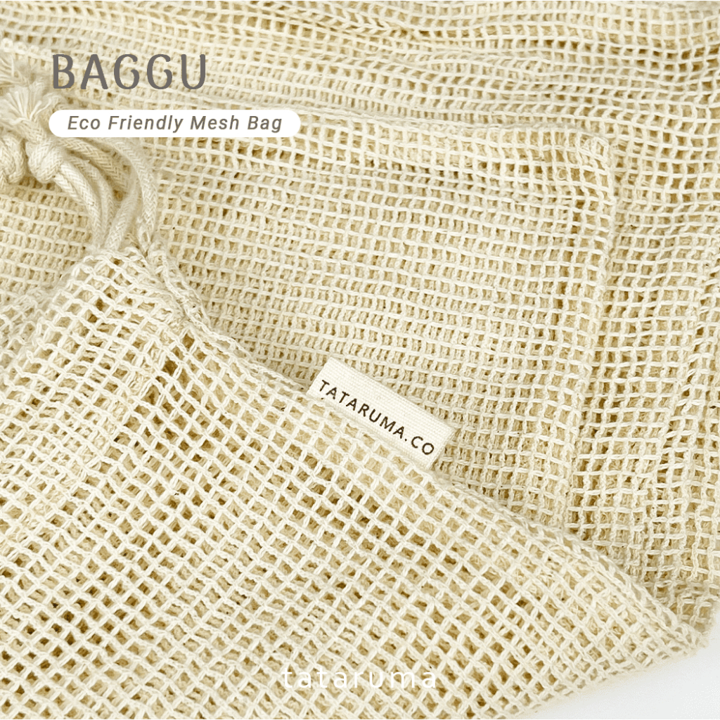 TATARUMA Baggu - Tas Jaring Reusable Eco Friendly Set of 3 Cotton Produce Mesh Bag Kantong Buah Sayur