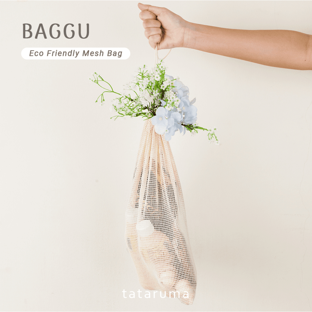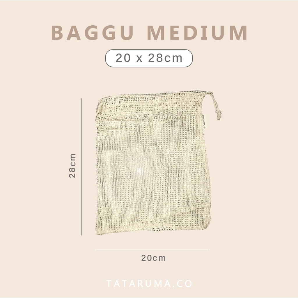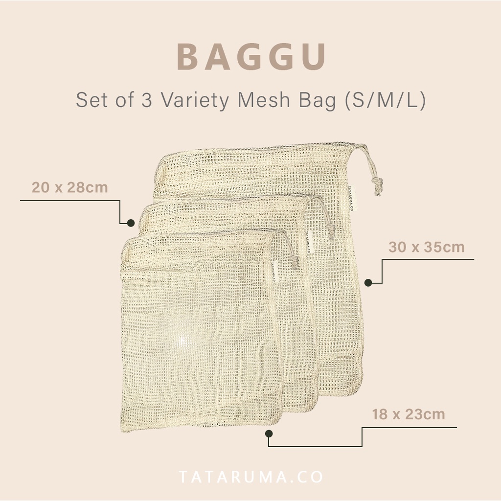 TATARUMA Baggu - Tas Jaring Reusable Eco Friendly Set of 3 Cotton Produce Mesh Bag Kantong Buah Sayur