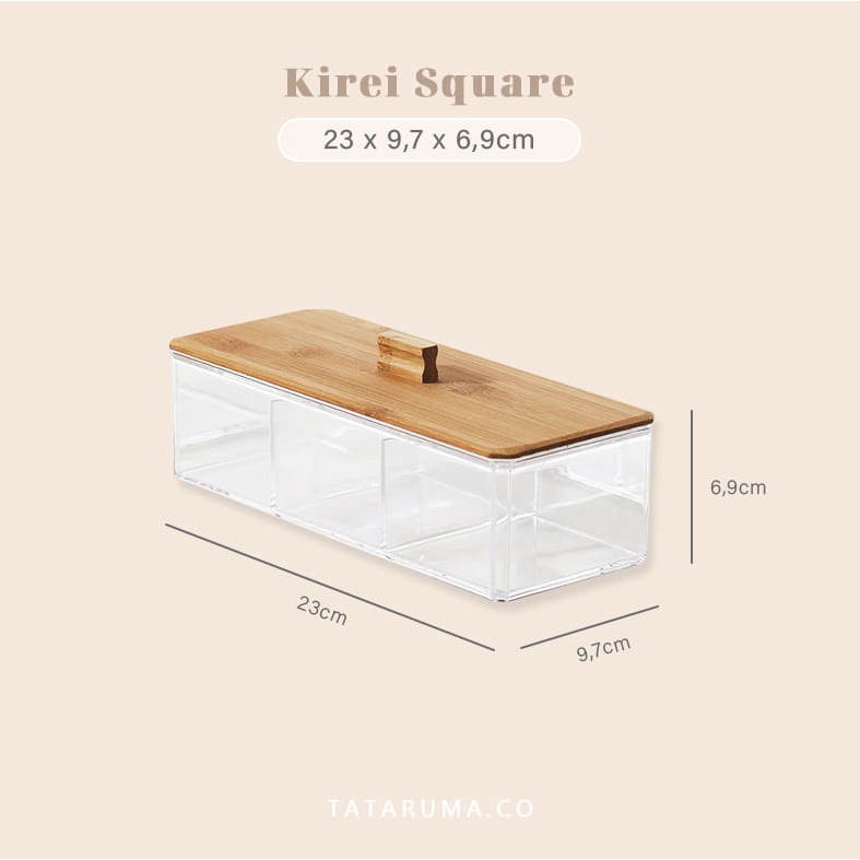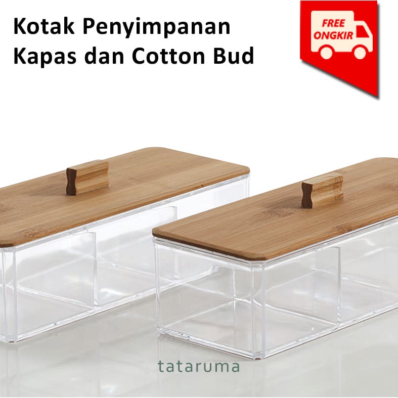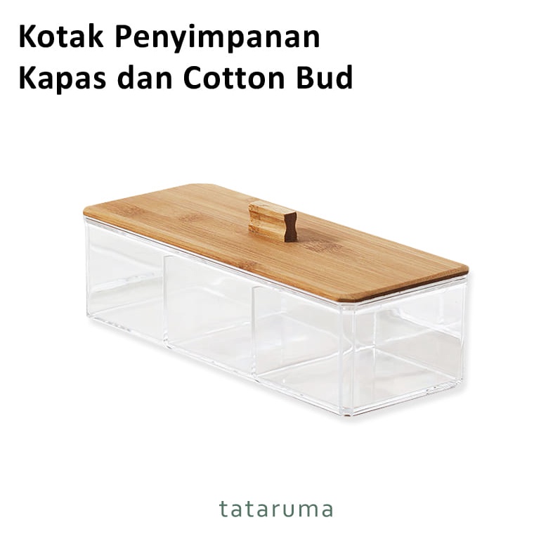 TATARUMA Kirei Square - Kotak Penyimpanan Kapas Cotton Bud Transparan Akrilik Tutup Bambu Organizer Serbaguna