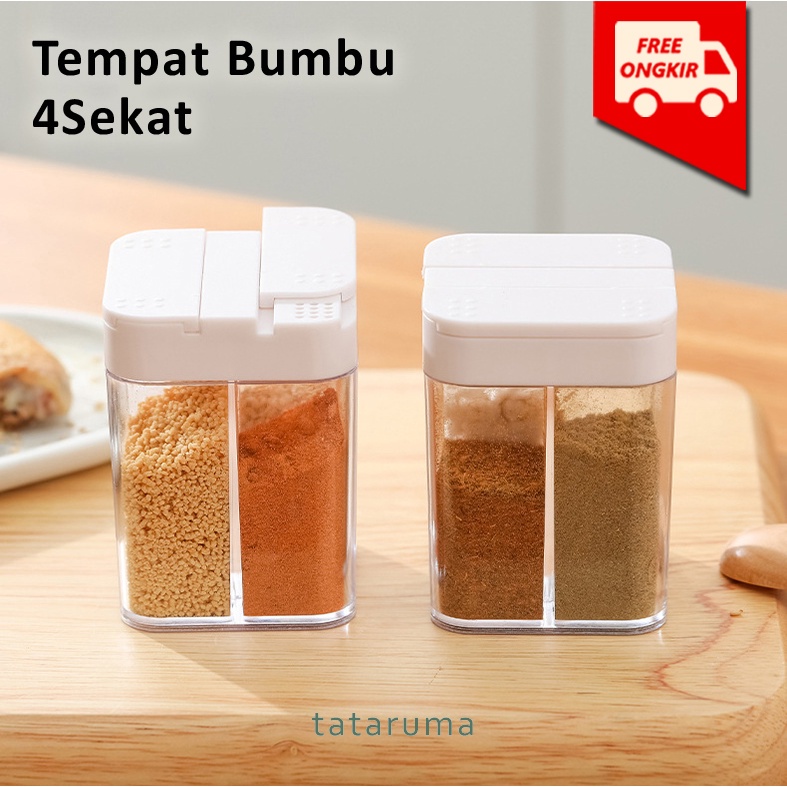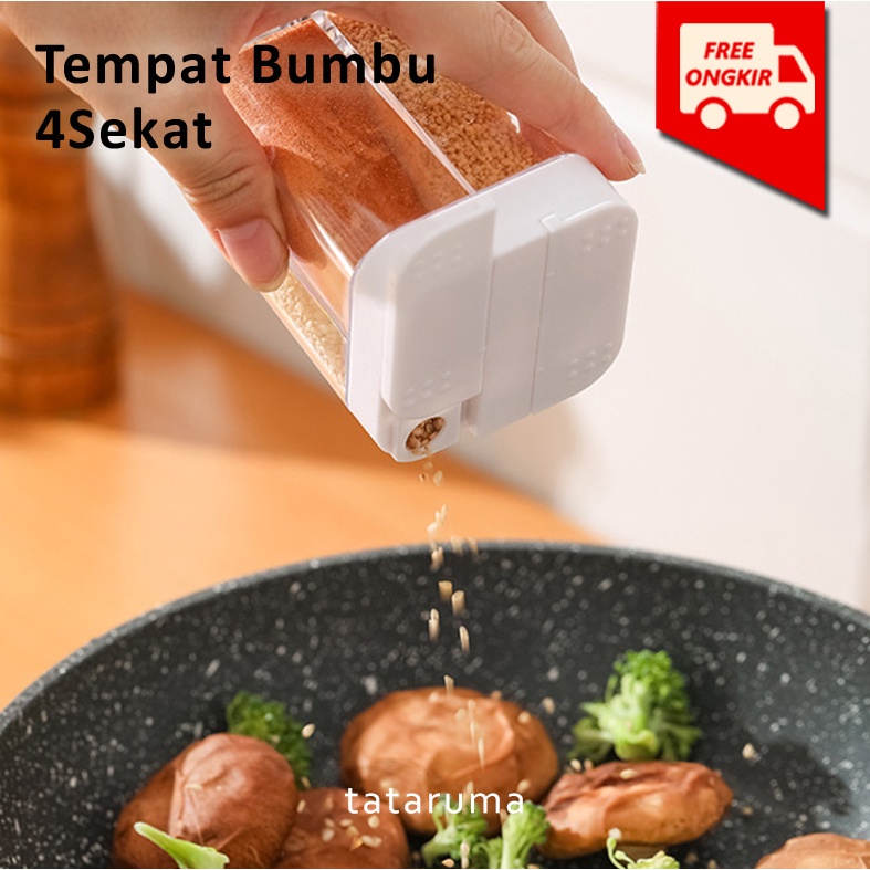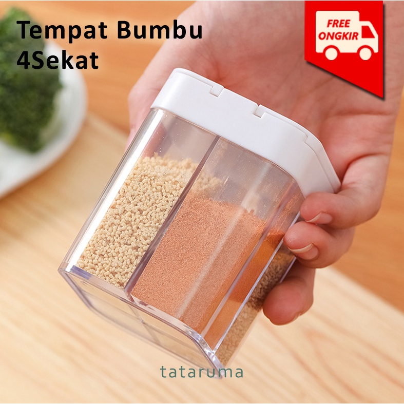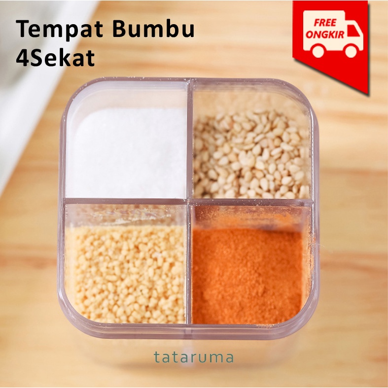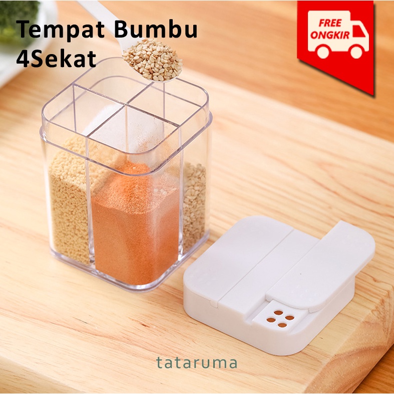 TATARUMA Kona - Kotak Tempat Bumbu Dapur 4 Sekat Dengan Lubang Bubuk