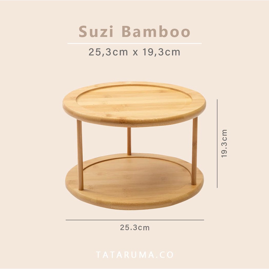 TATARUMA Bundling Mido Suzi Bamboo - Tempat Wadah Bumbu dengan Rak Lazy Susan Bambu