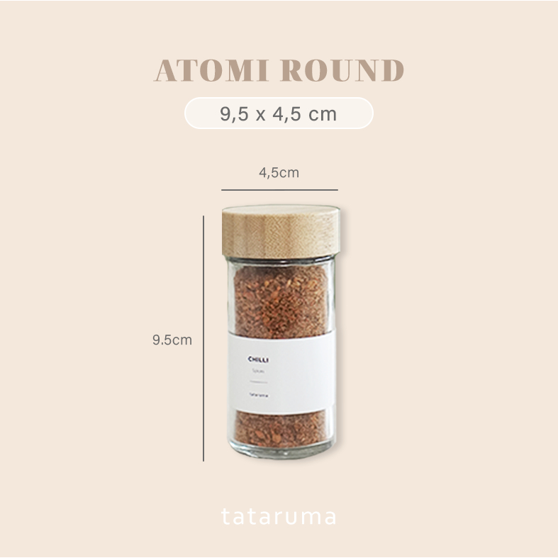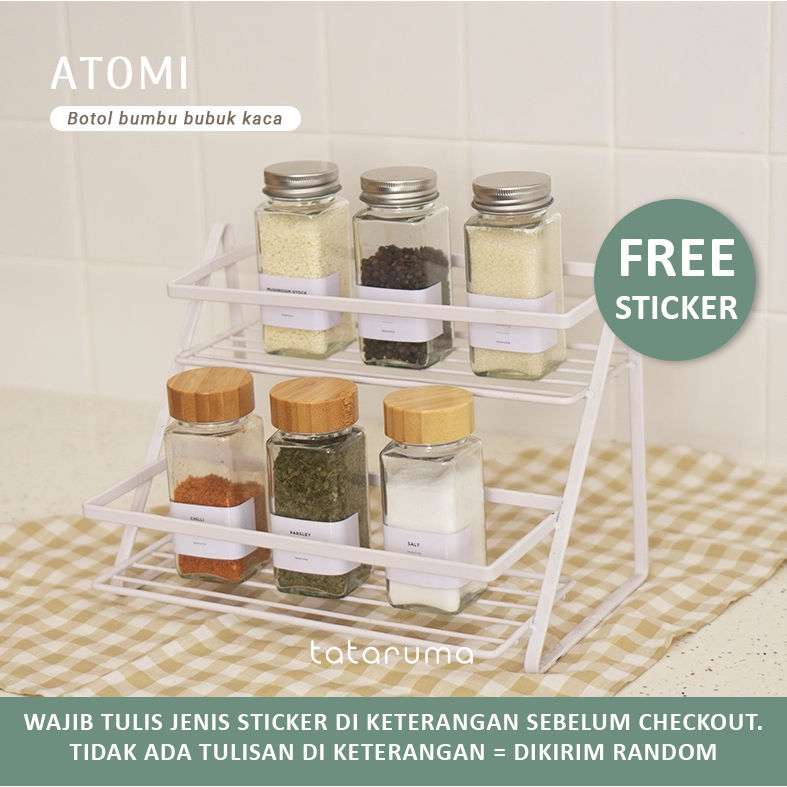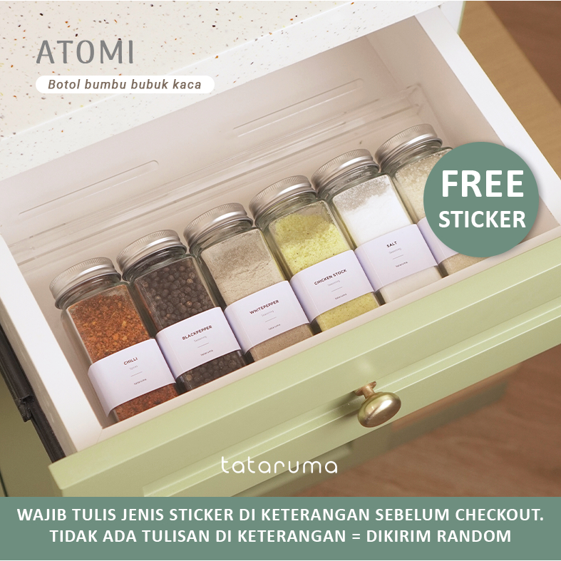 TATARUMA Atome - Botol Bumbu Bubuk Kaca Persegi Transparan Estetik 120g