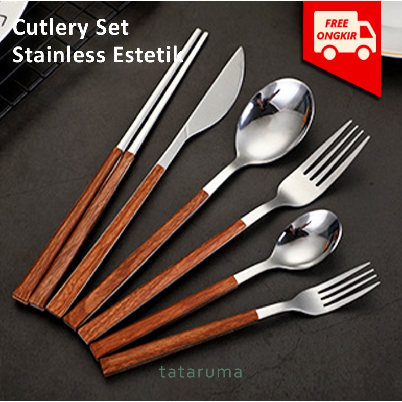 TATARUMA Choko Cutlery SATUAN - Sendok Garpu Pisau Sumpit Stainless Kayu Estetik