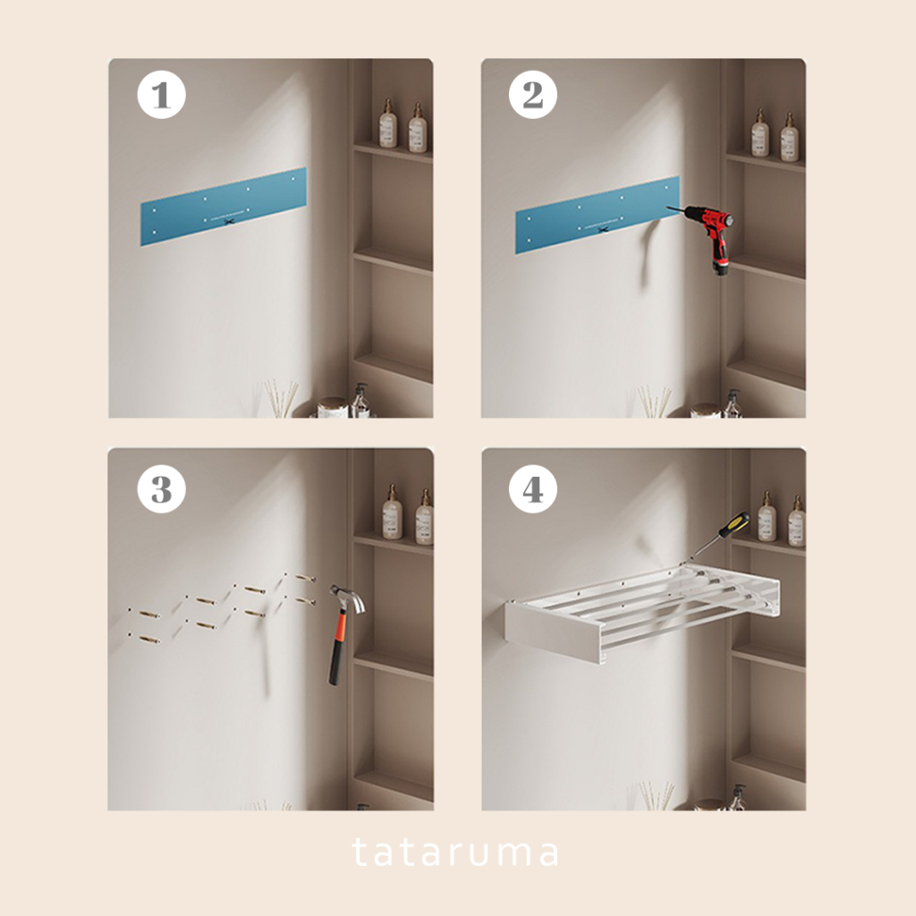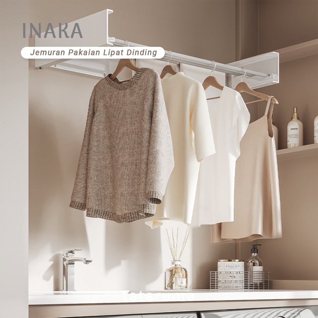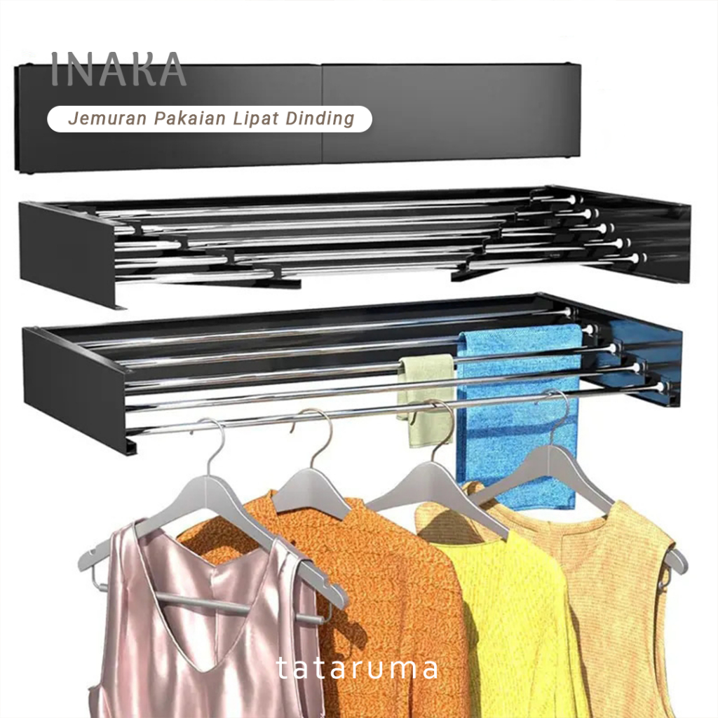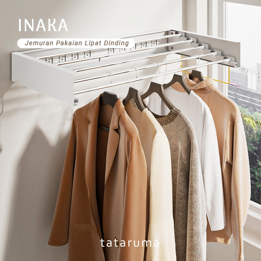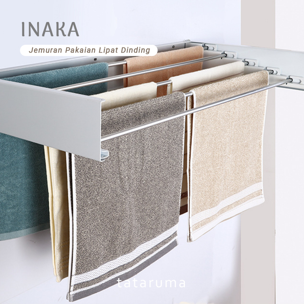 TATARUMA Inaka - Jemuran Pakaian Handuk Sepatu Lipat Tempel Dinding Baju Handuk Balkon Buka Tutup