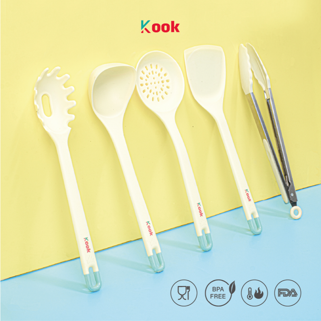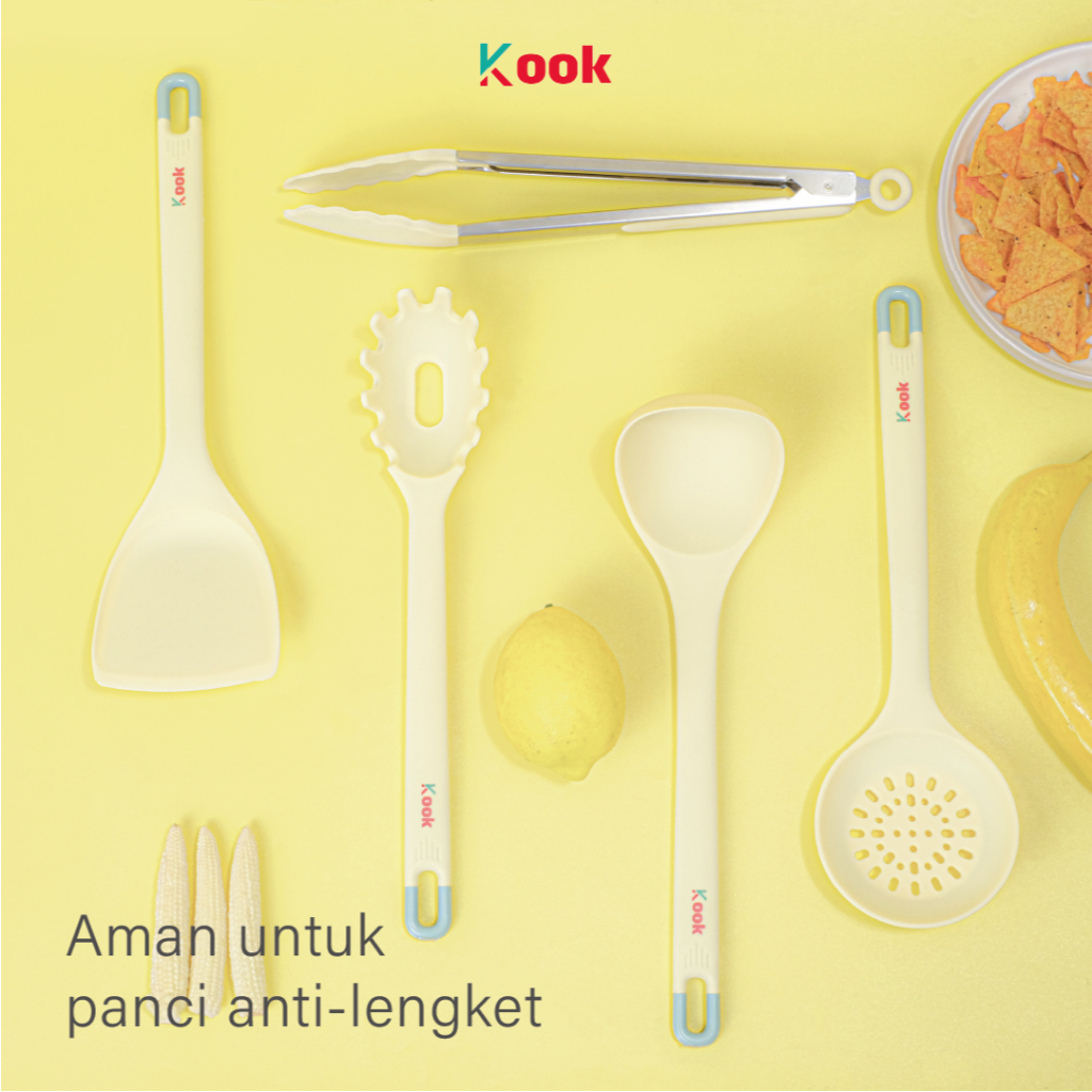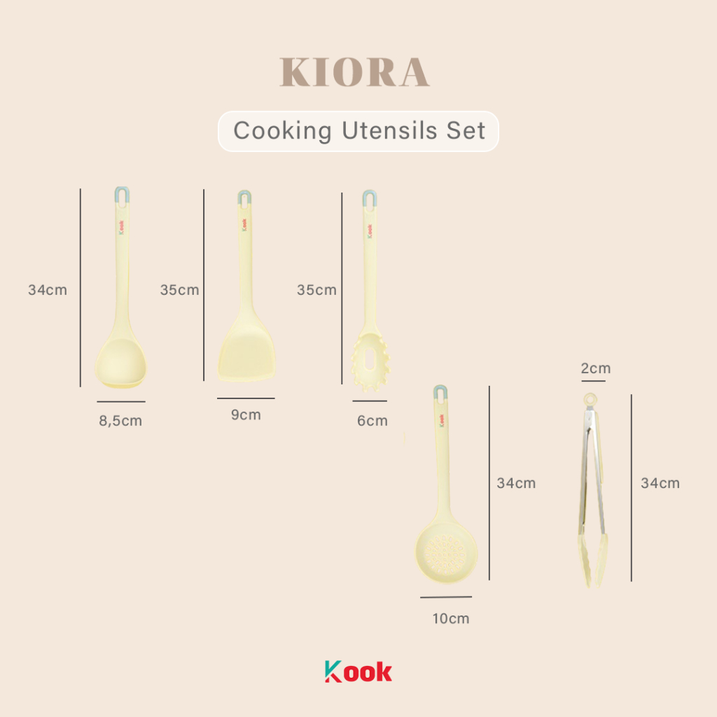 KOOK Kiora - Silicone Cooking Kitchen Utensil 5 pcs Food Grade BPA Free Set Peralatan Masak Silikon Spatula Sendok Sup Pasta Pencapit Tongs Sutil