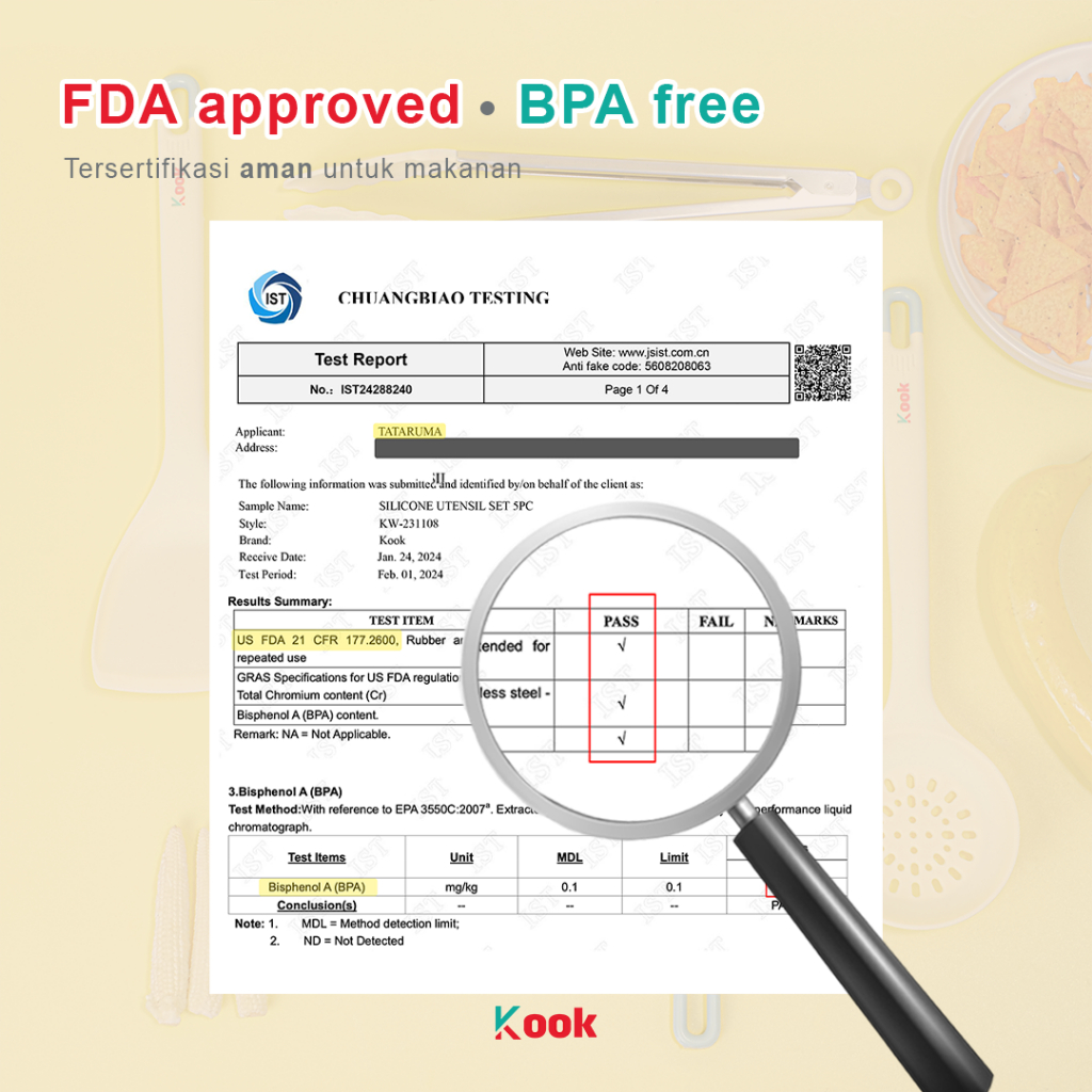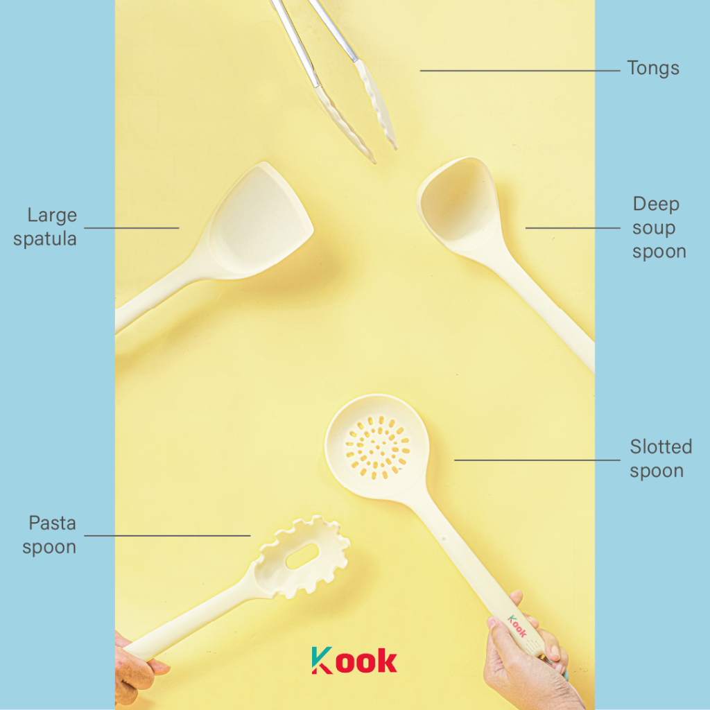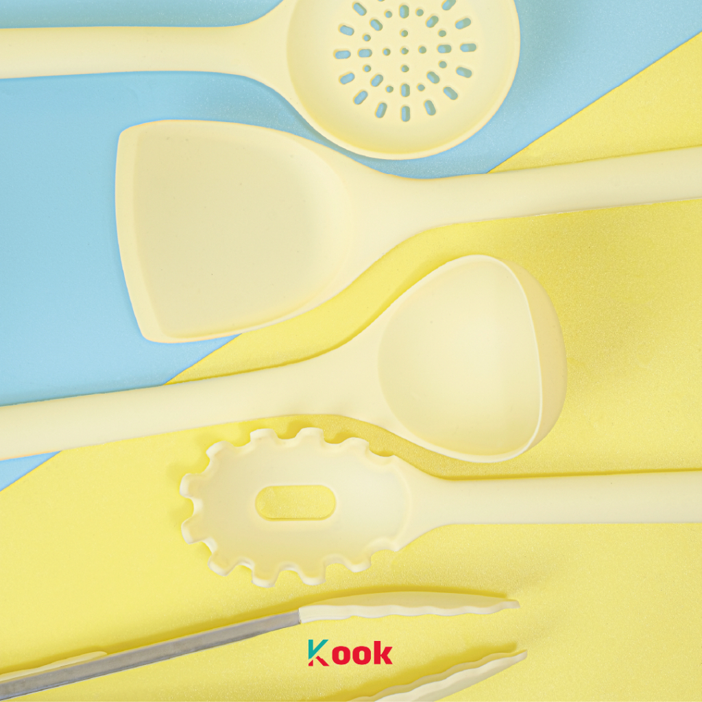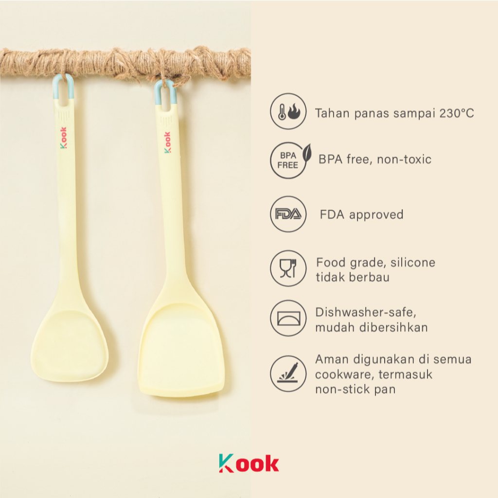 KOOK Kiora - Silicone Cooking Kitchen Utensil 5 pcs Food Grade BPA Free Set Peralatan Masak Silikon Spatula Sendok Sup Pasta Pencapit Tongs Sutil