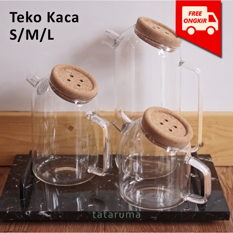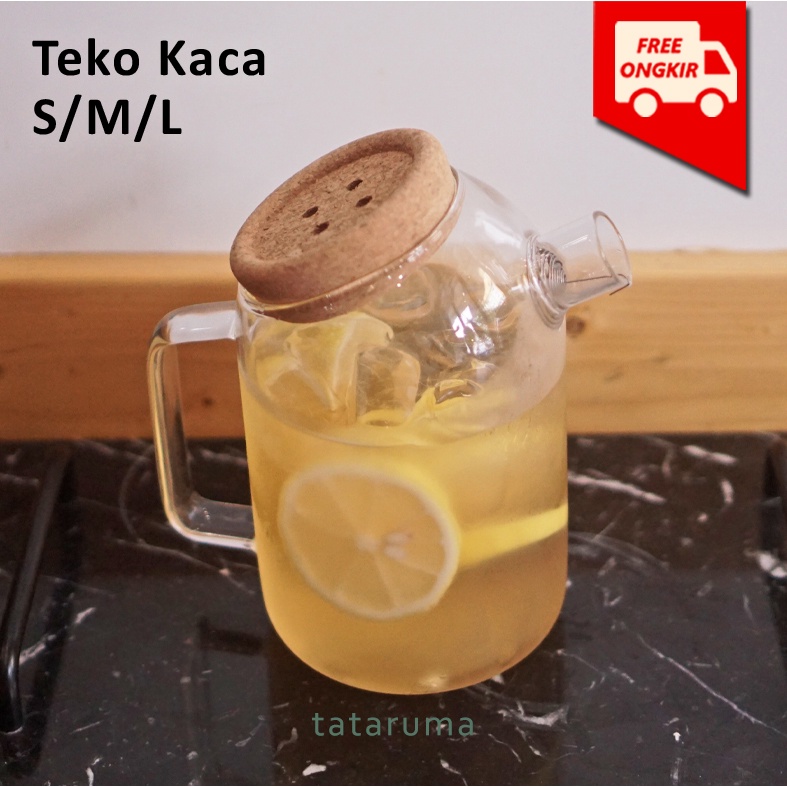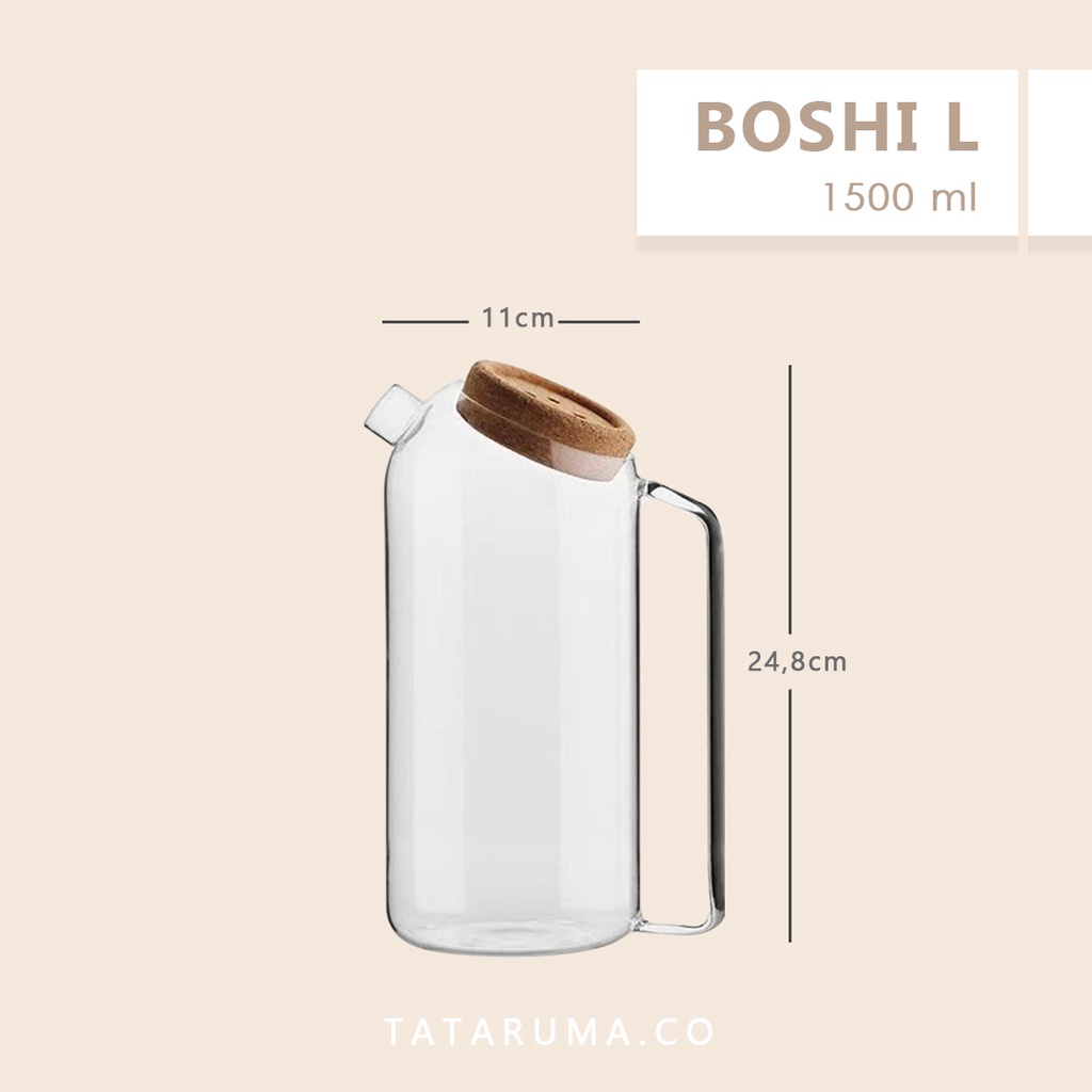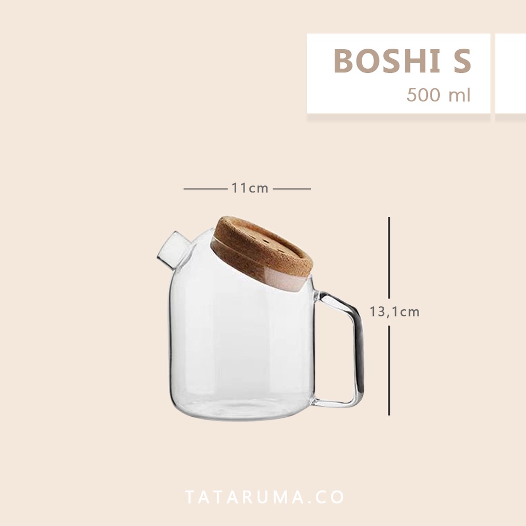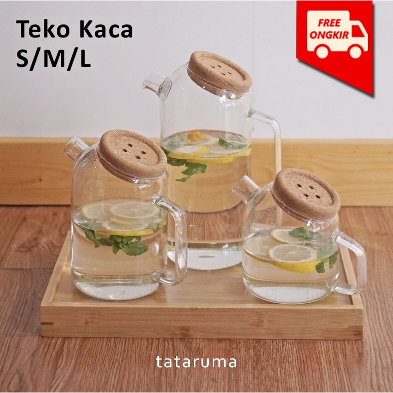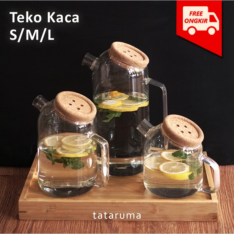 TATARUMA Boshi - Teko Pitcher Jug Estetik Kaca Dengan Saringan Stainless Tahan Panas Dingin Bisa Masak Teh Kopi Air Infused Water