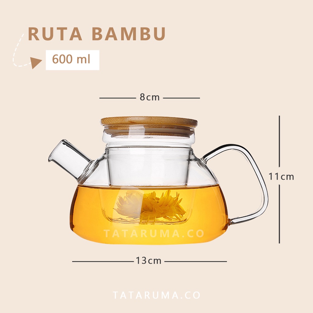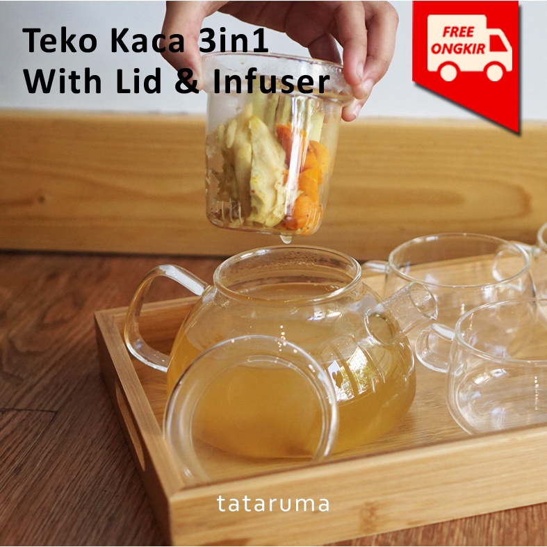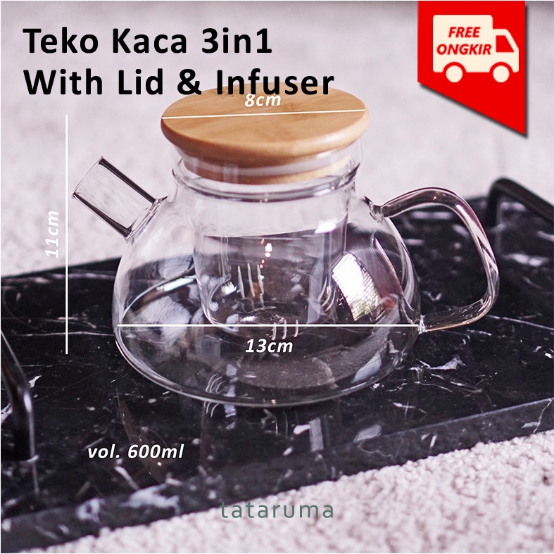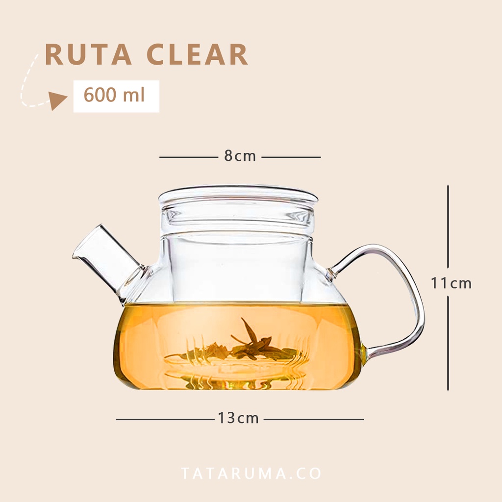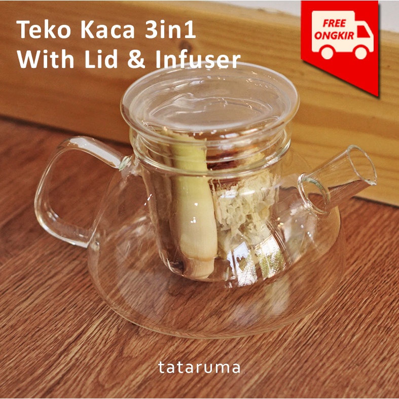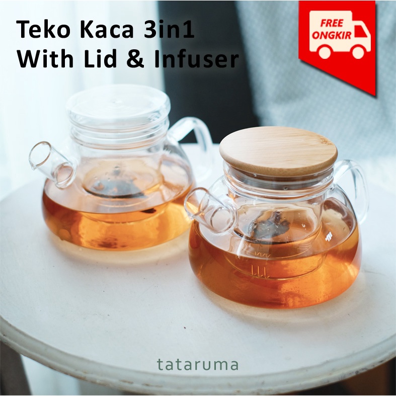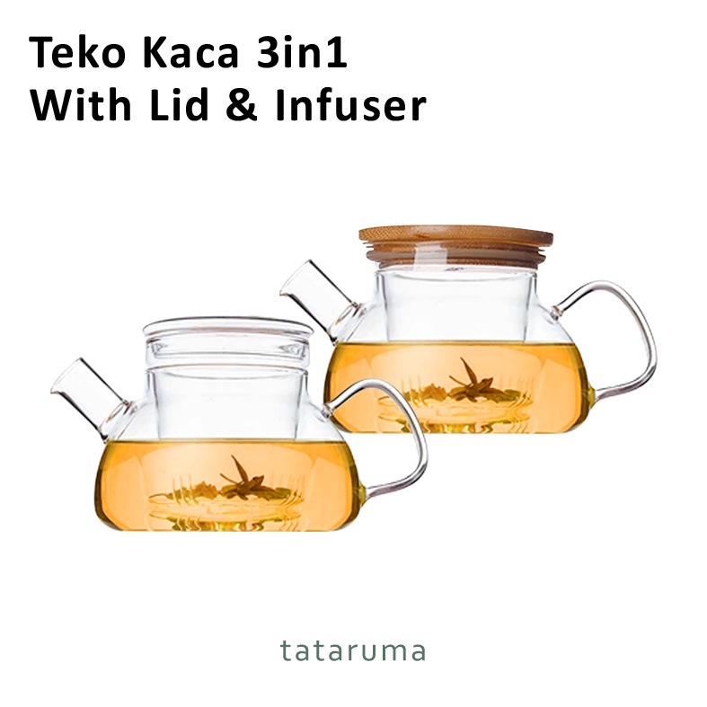 TATARUMA Ruta - Teko Kaca 3in1 Tahan Panas Dengan Tutup dan Saringan 600ml