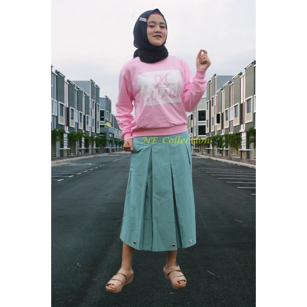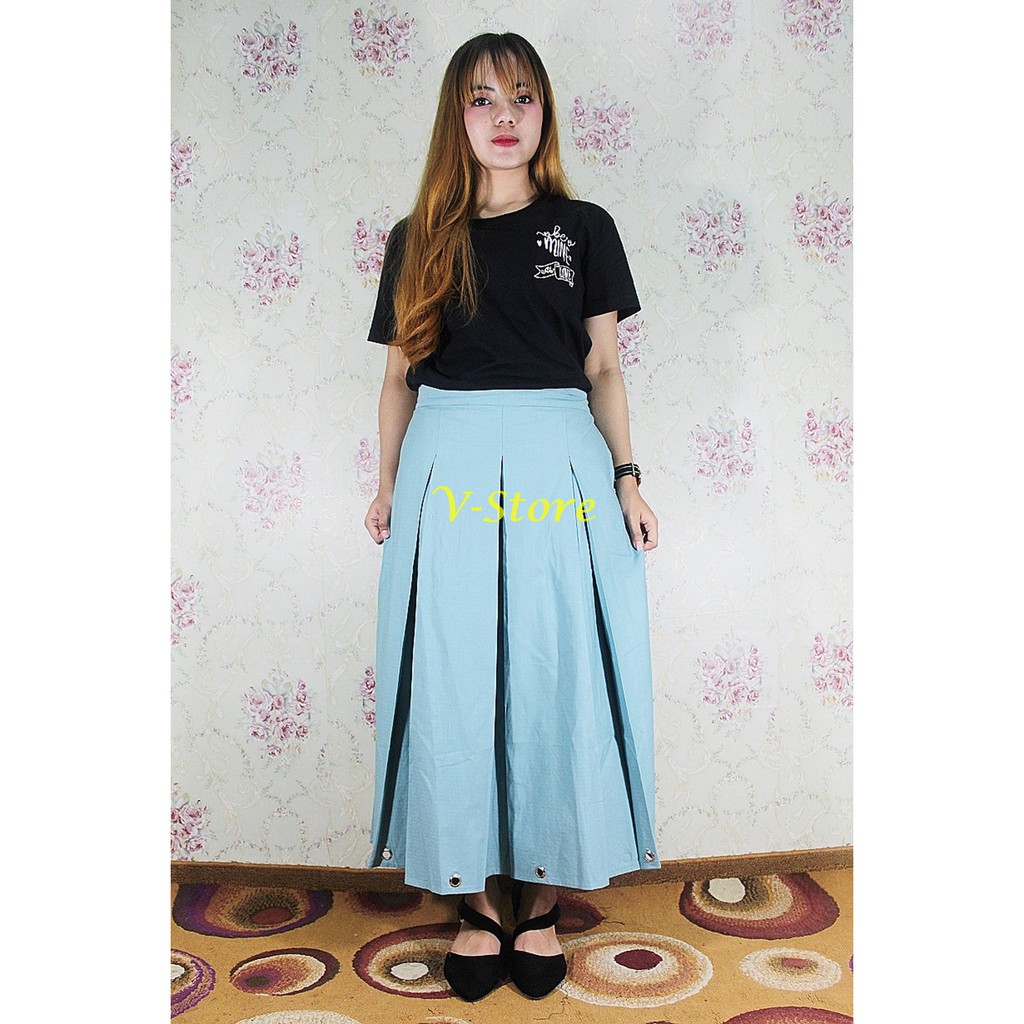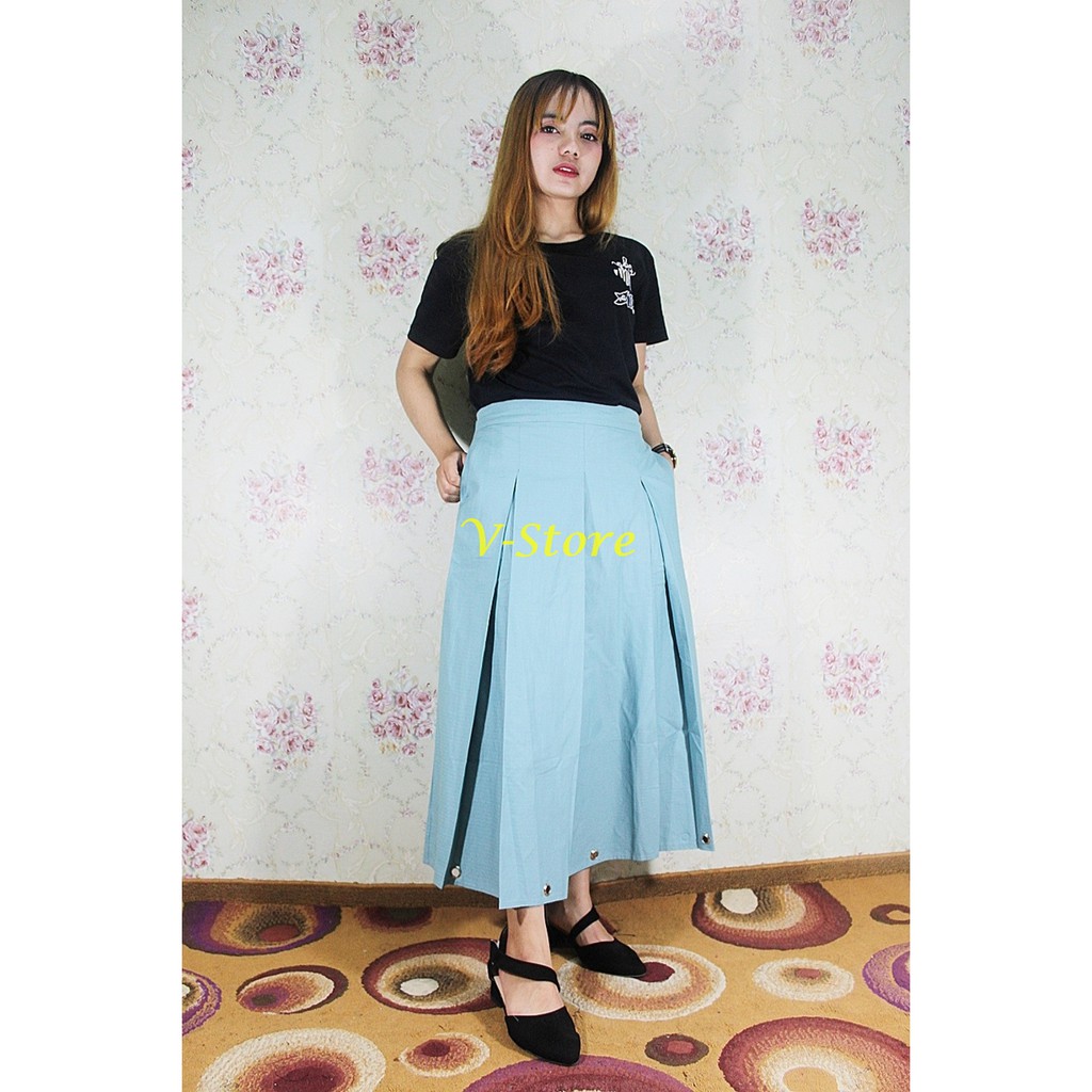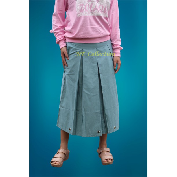 Rok Ring 7/8 Biru Wardah Rok Wanita Bahan Katun Premium Tebal Rok Rempel Aksen Ring Bawah Trendy