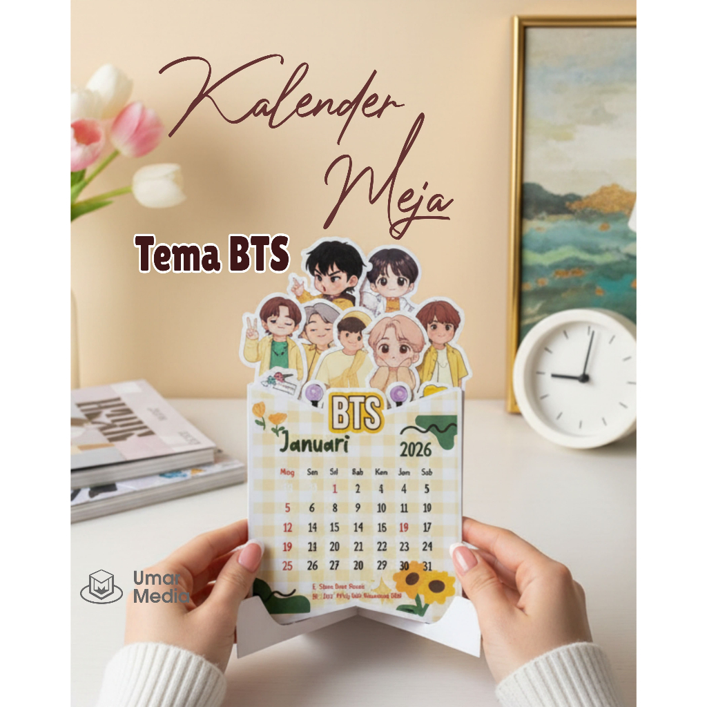 kalender meja 2026 aesthetic - kalender meja lucu - Tema BTS KPOP KOREA - Kalender Meja Estetik 19x11 cm Bisa Custom Desain Dekorasi Meja Belajar Kerja Hadiah Spesial Kalender2026