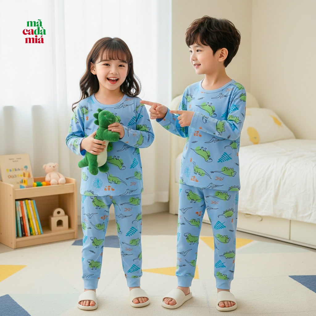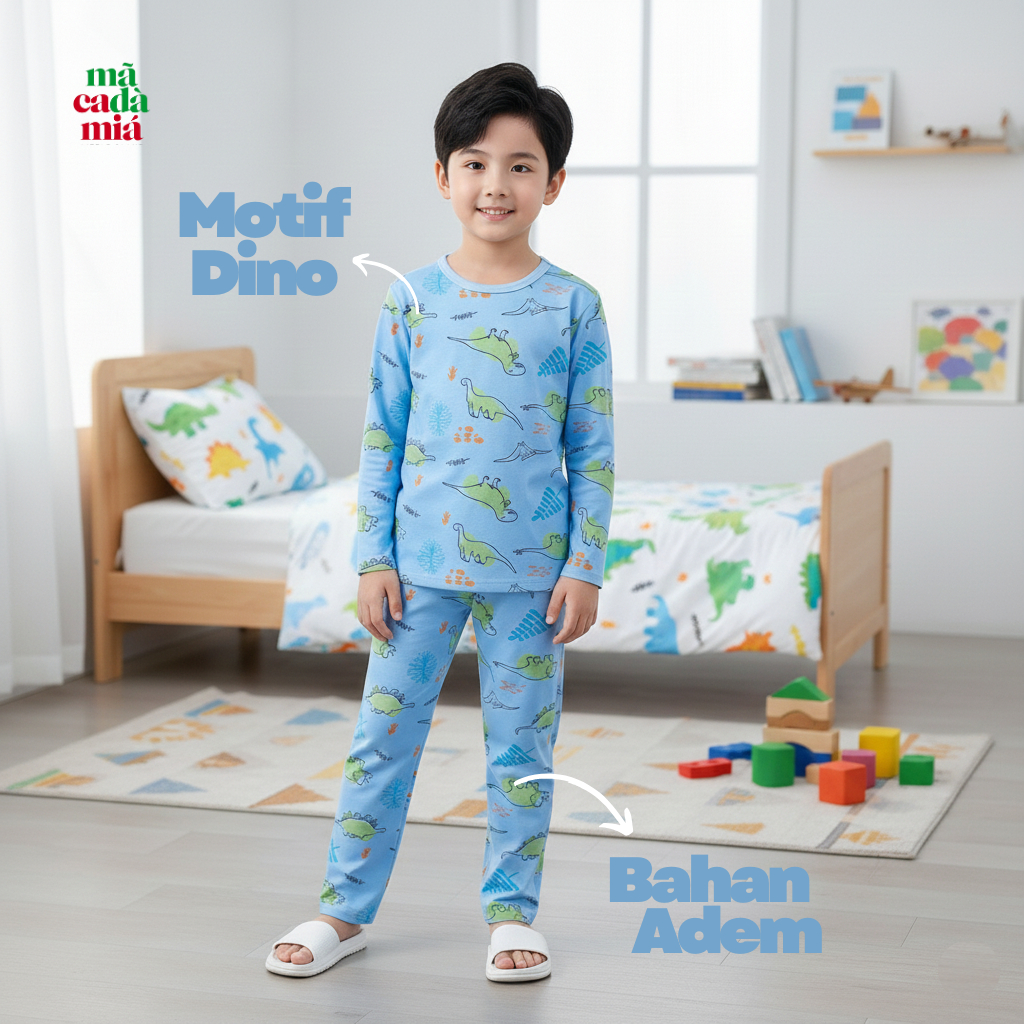 Baju Tidur Anak Karakter Dinosaurus 1-7 Tahun Setelan Piyama Anak Adem - Macadamia Little Glamz