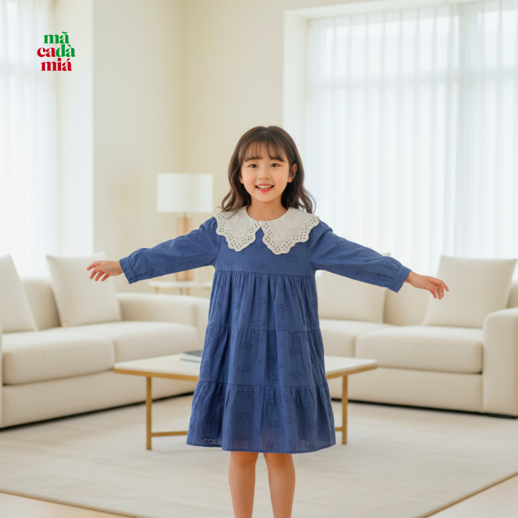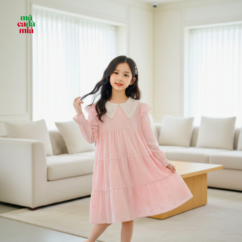 Dress Anak Perempuan 4-7 Tahun - Dress Anak Lace Collar Bahan Adem - Macadamia Little Glamz