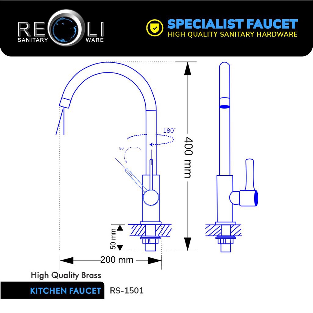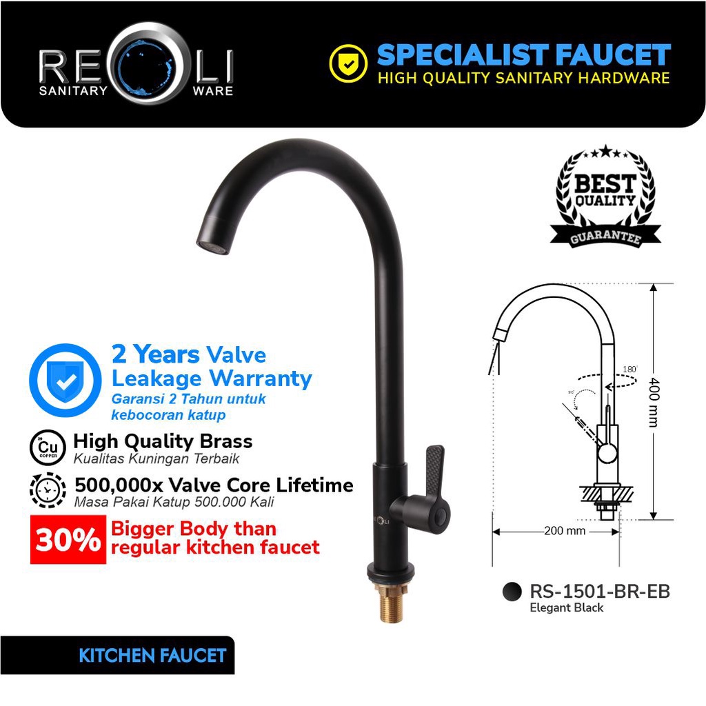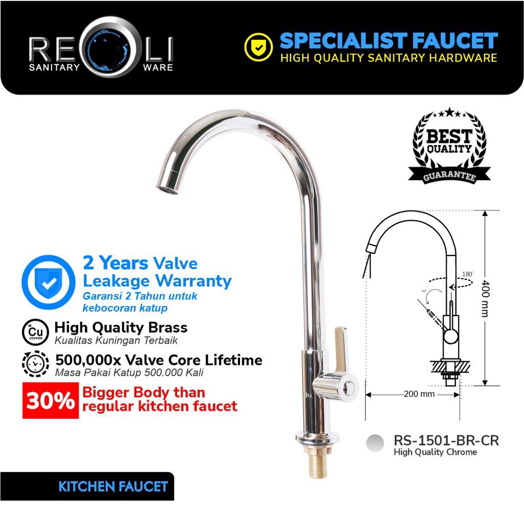 REOLI Keran Angsa Dapur Sink Kuningan 1501