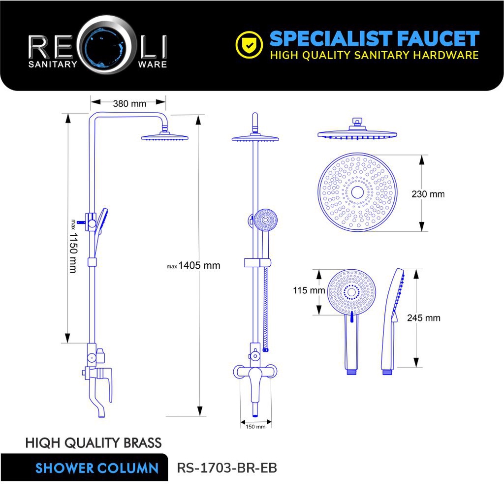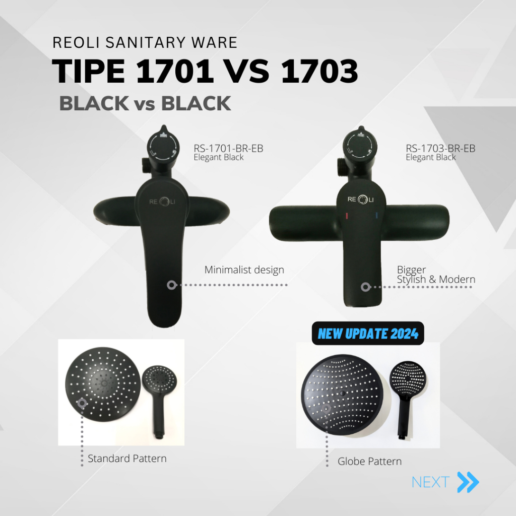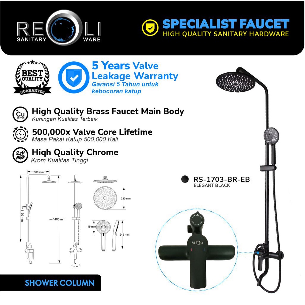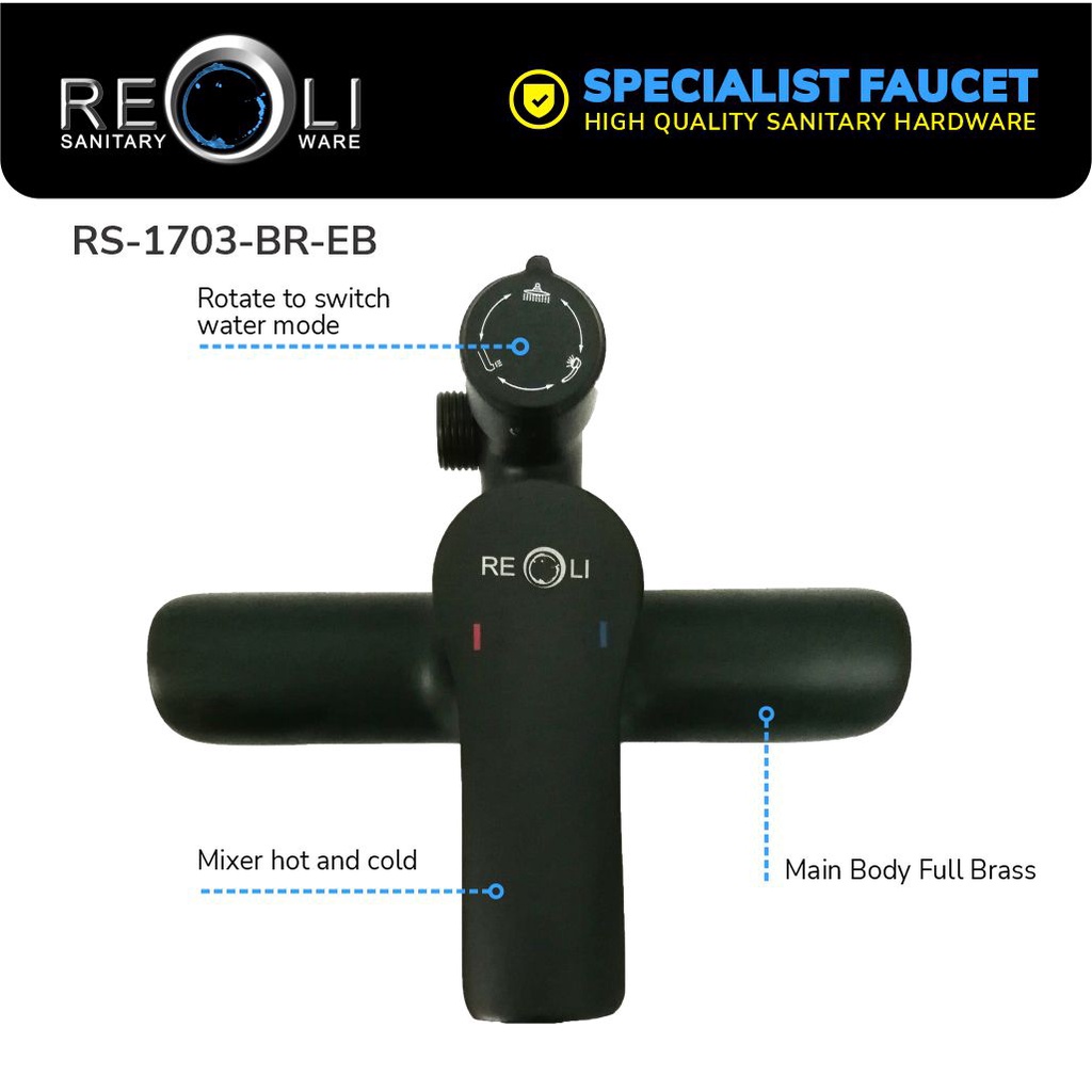 REOLI Shower Mandi Tiang Set Column Mandi Mixer Keran Panas Dingin Hitam 1703