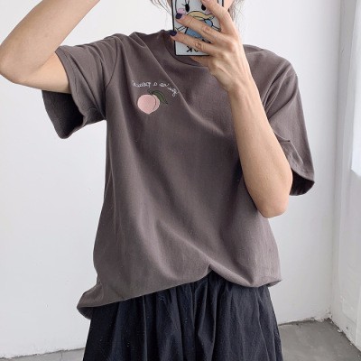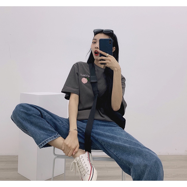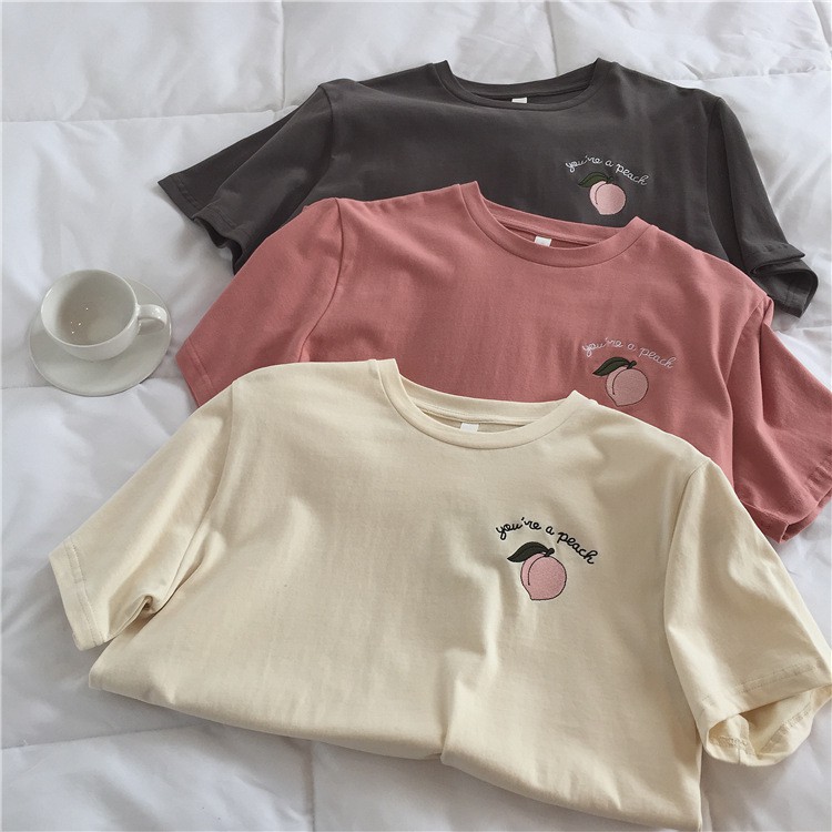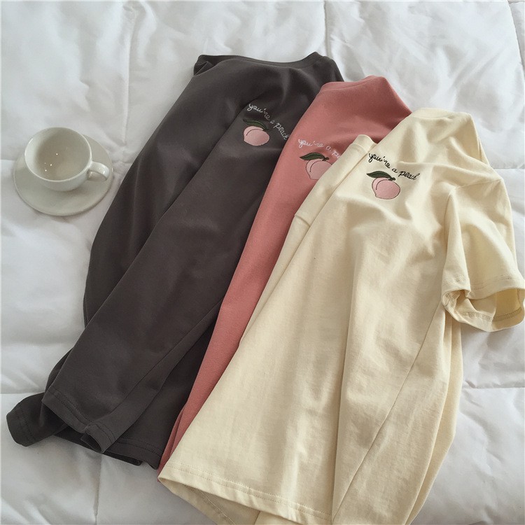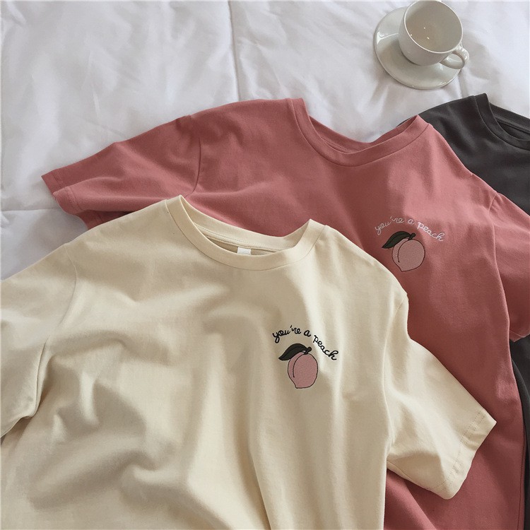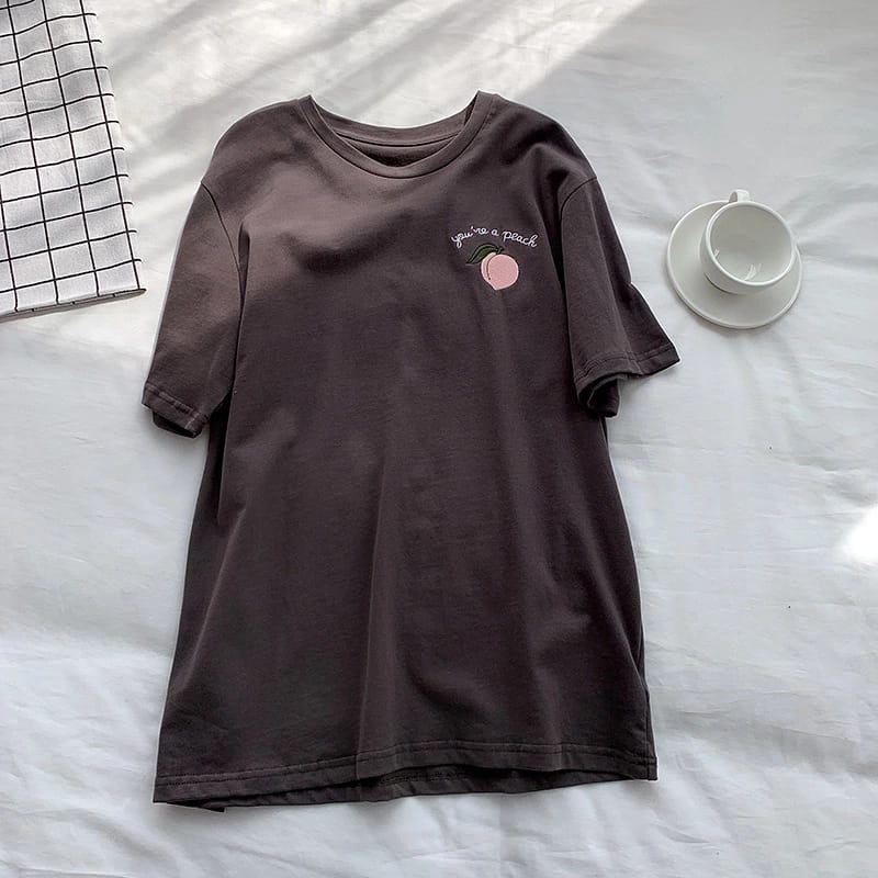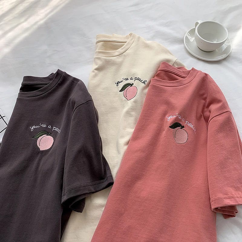 [littlecrab] Kaos Oversize Korea T-shirt Peach Kaos Couple Unisex Korean Style
