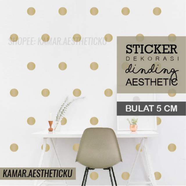 BULAT ROUND Dekorasi Aesthetic Dinding Stiker Emas Gold Doff Matte DIY Murah Sticker Lingkaran Decal